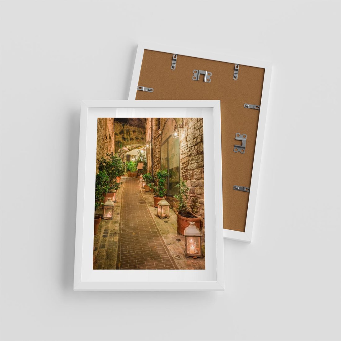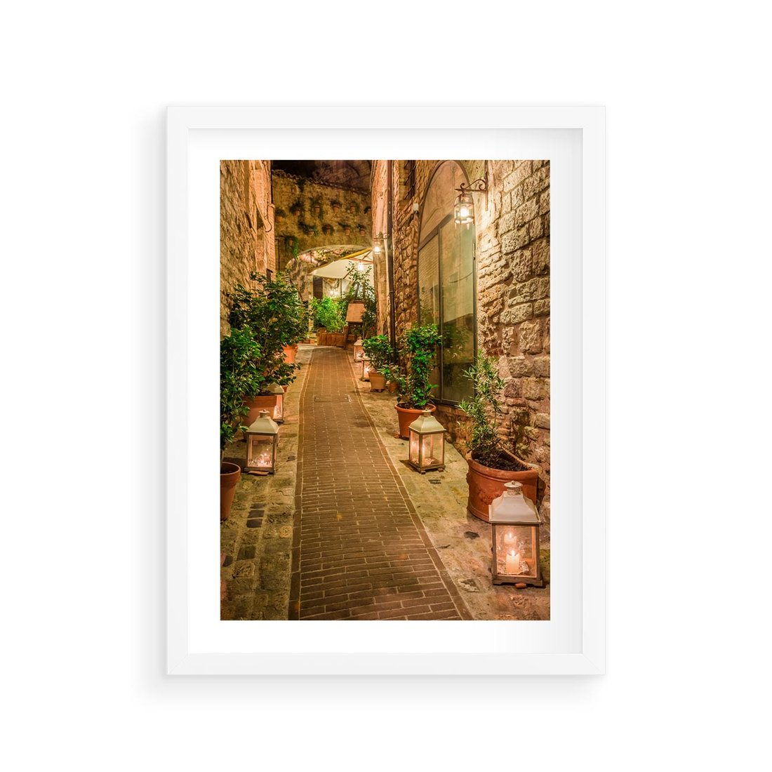 Plakat w ramie 30x40 - Perspektywa Uliczki Miejskiej - uliczka, perspektywa - rama biała