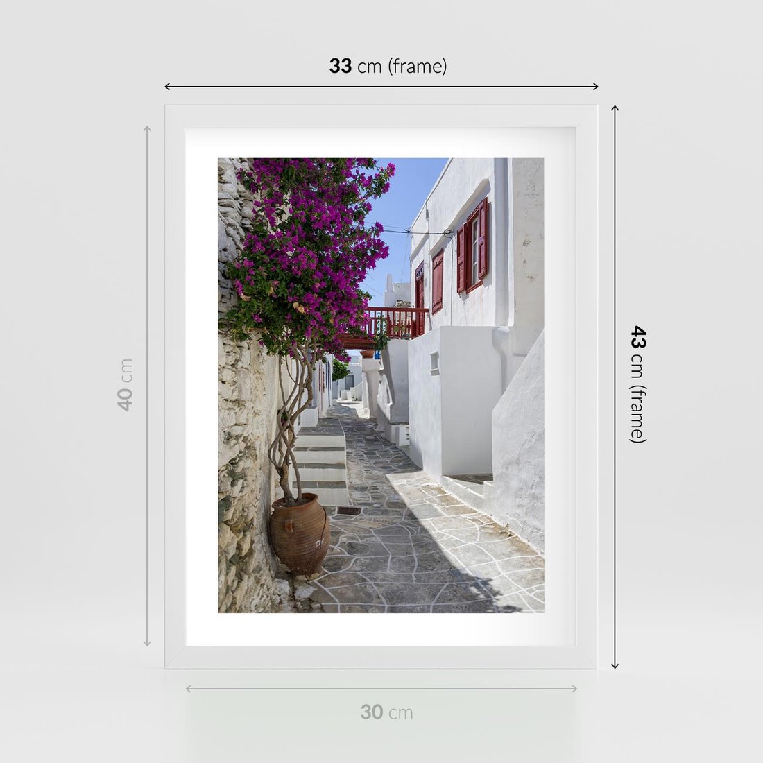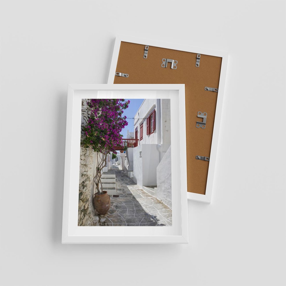 Plakat w ramie 30x40 - Perspektywiczna Uliczka: Miejski Labirynt - uliczka, perspektywa - rama biała