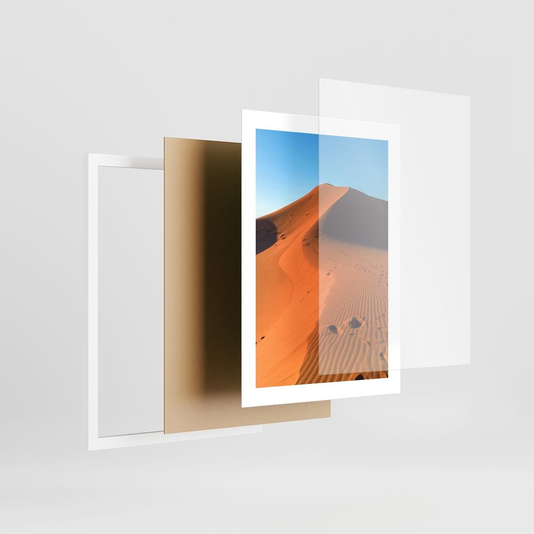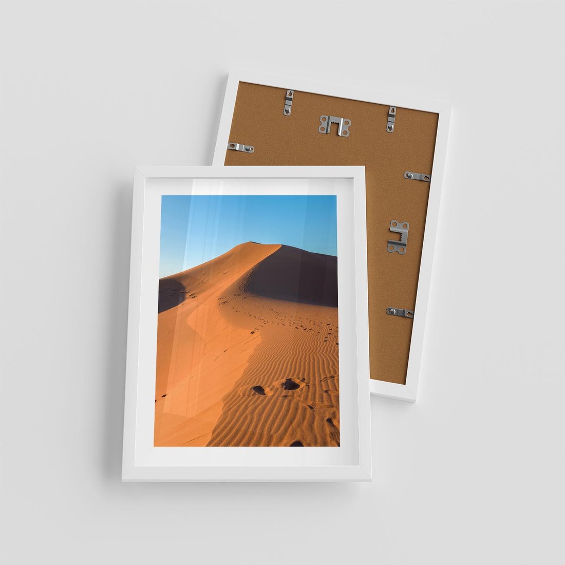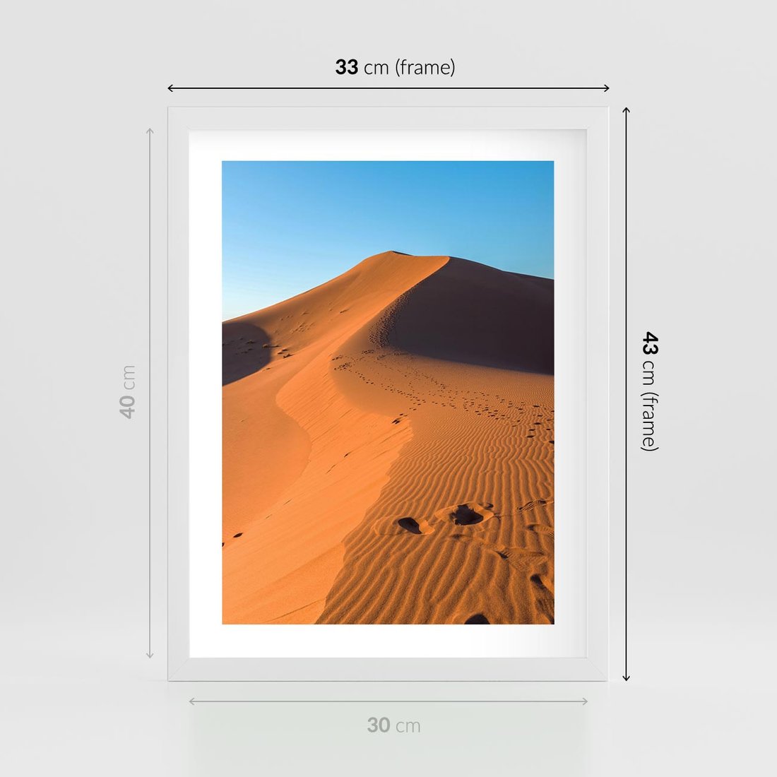 Plakat w ramie 30x40 - Piasek pustyni wędruje - pustynia, piasek - rama biała