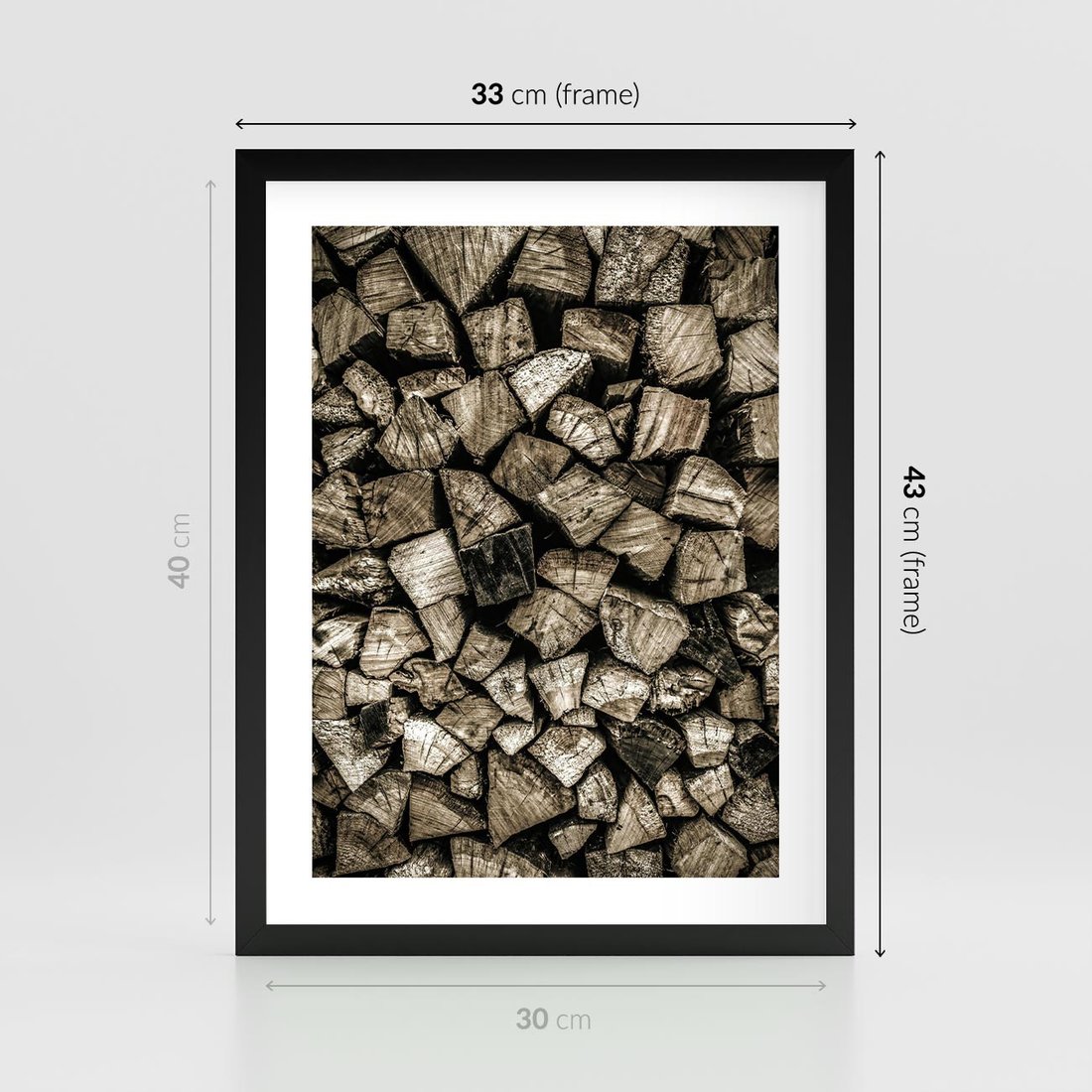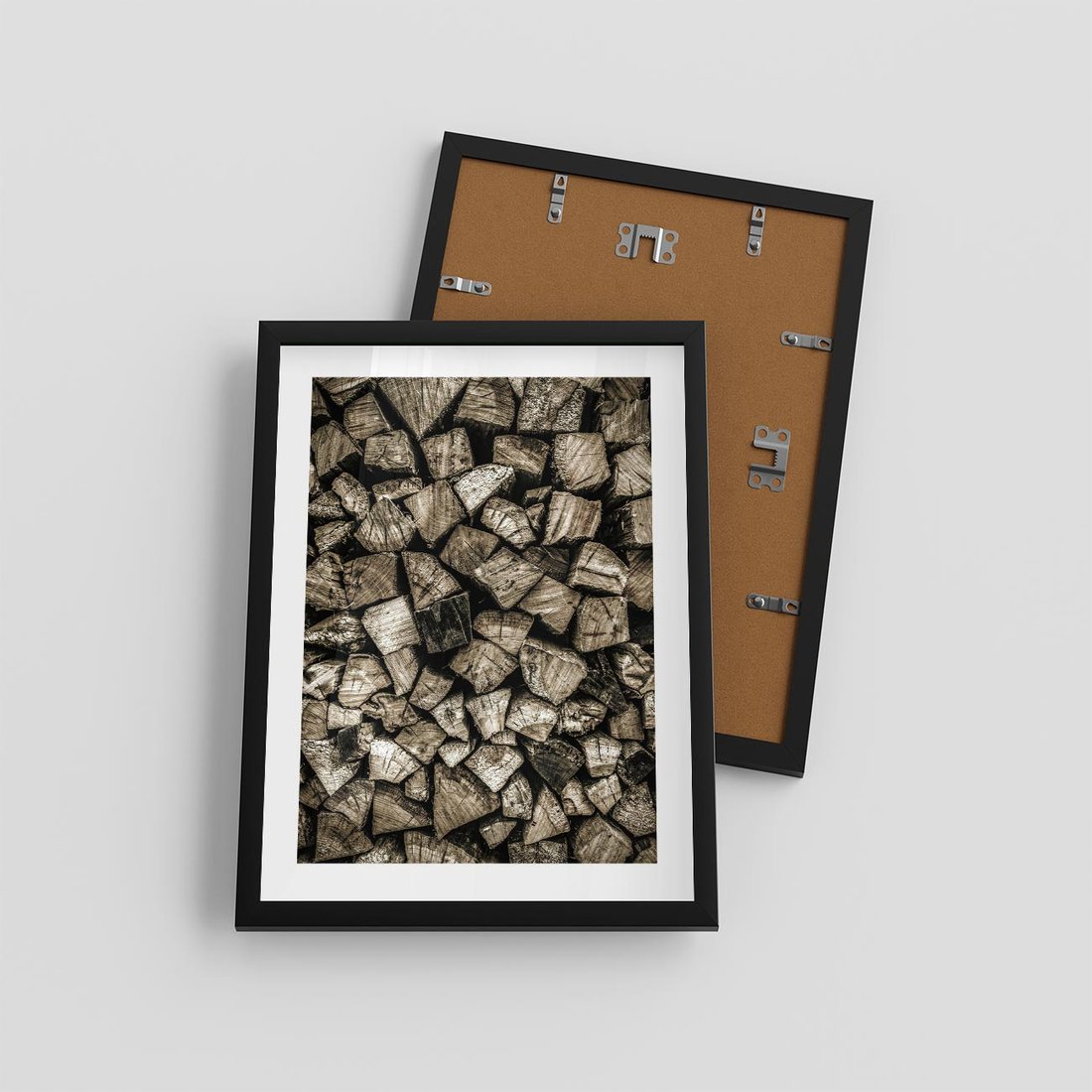 Plakat w ramie 30x40 - Piękno Drewna - belki drewna, drewno - rama czarna