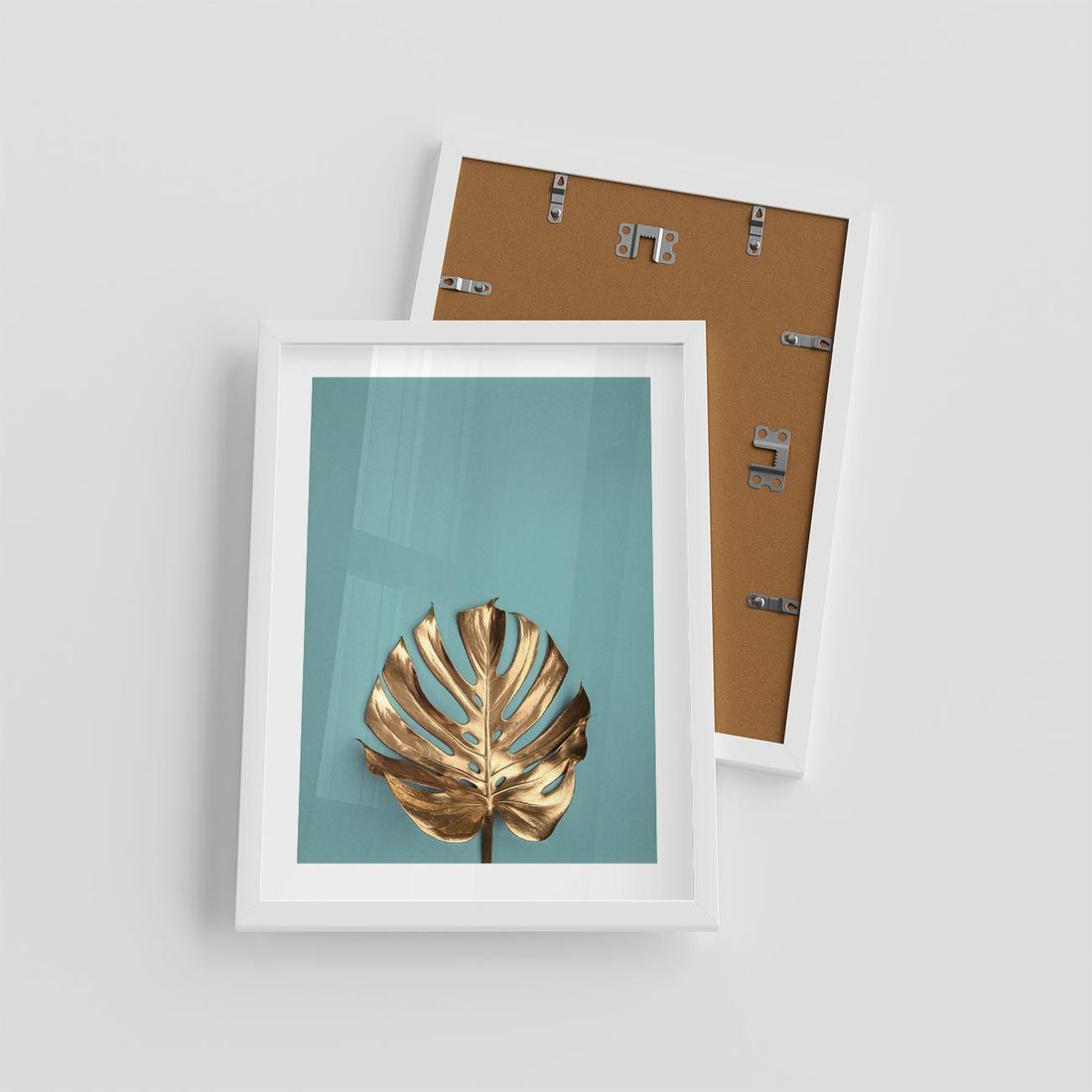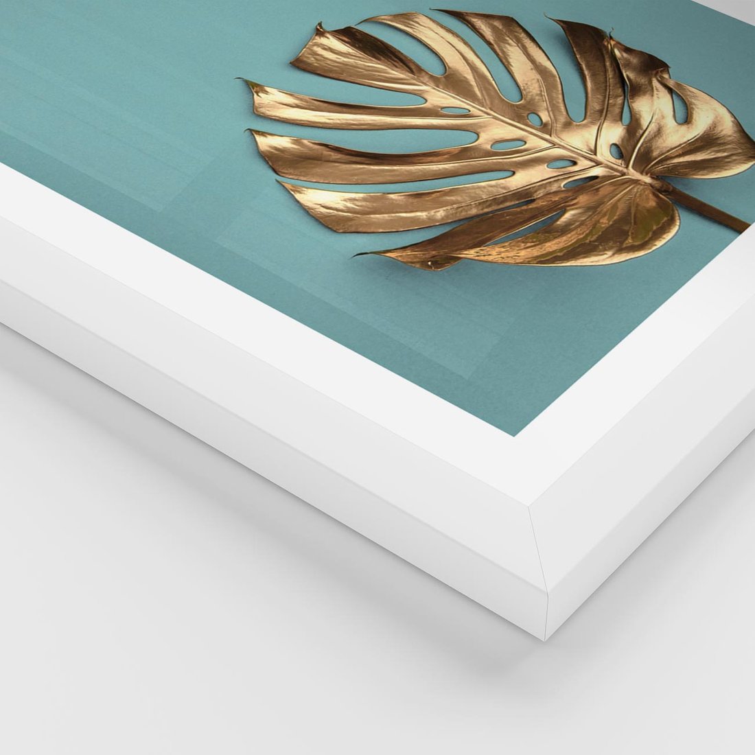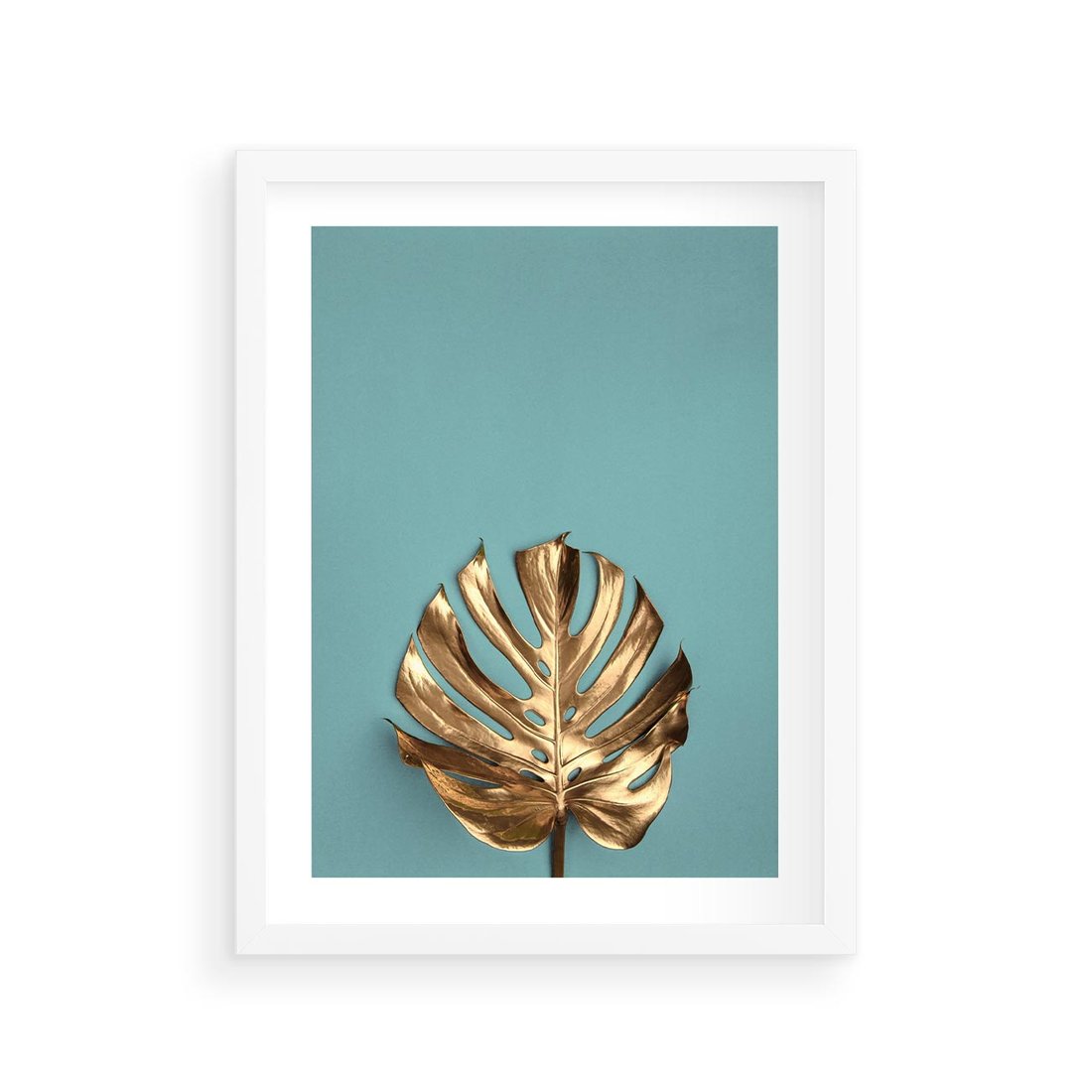 Przenieś piękno natury do swojego wnętrza za pomocą obrazu przedstawiającego złote liście monstera. Odczuj siłę i urok natury, które ożywają w tej minimalistycznej kompozycji.