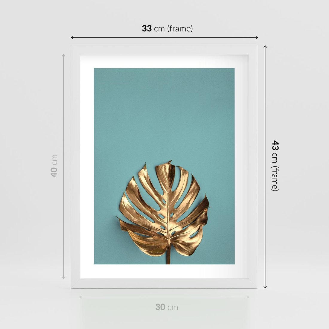 Plakat w ramie 30x40 - Piękno Natury - złote, liście - rama biała
