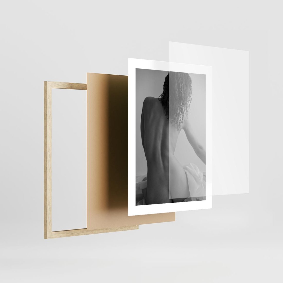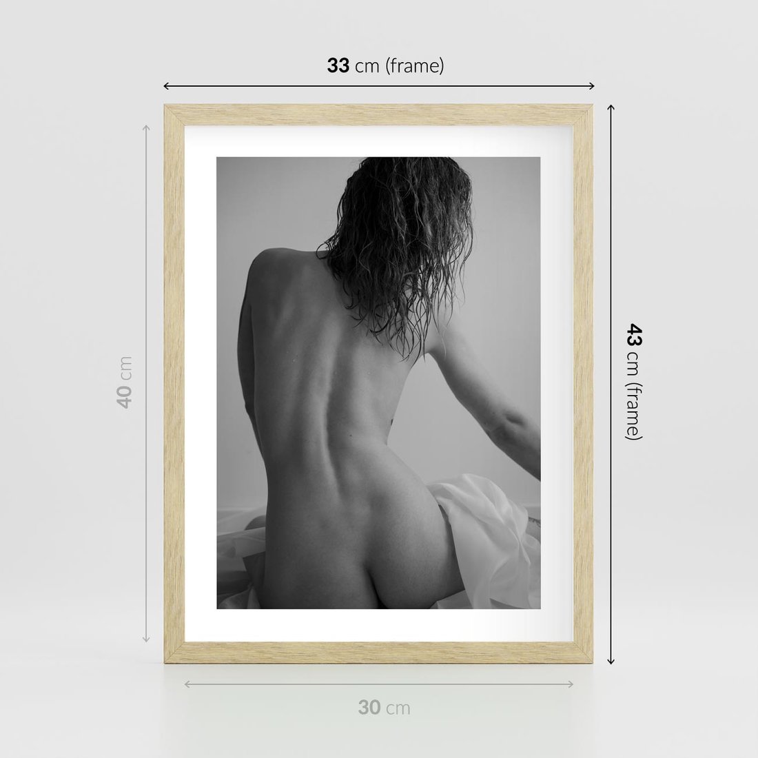 Plakat w ramie 30x40 - Piękno o Poranku - czarno biała fotografia, akt kobiecy - rama drewno