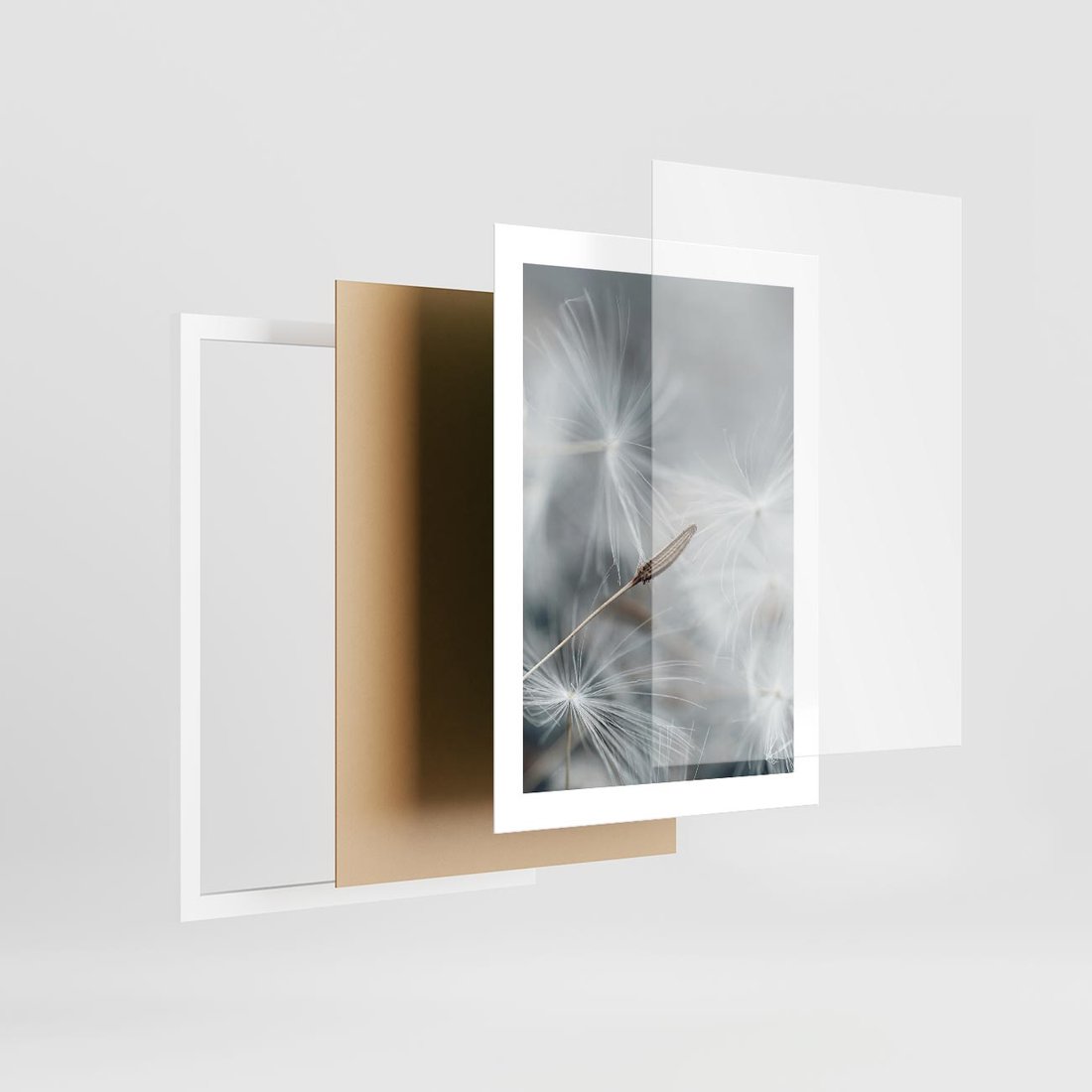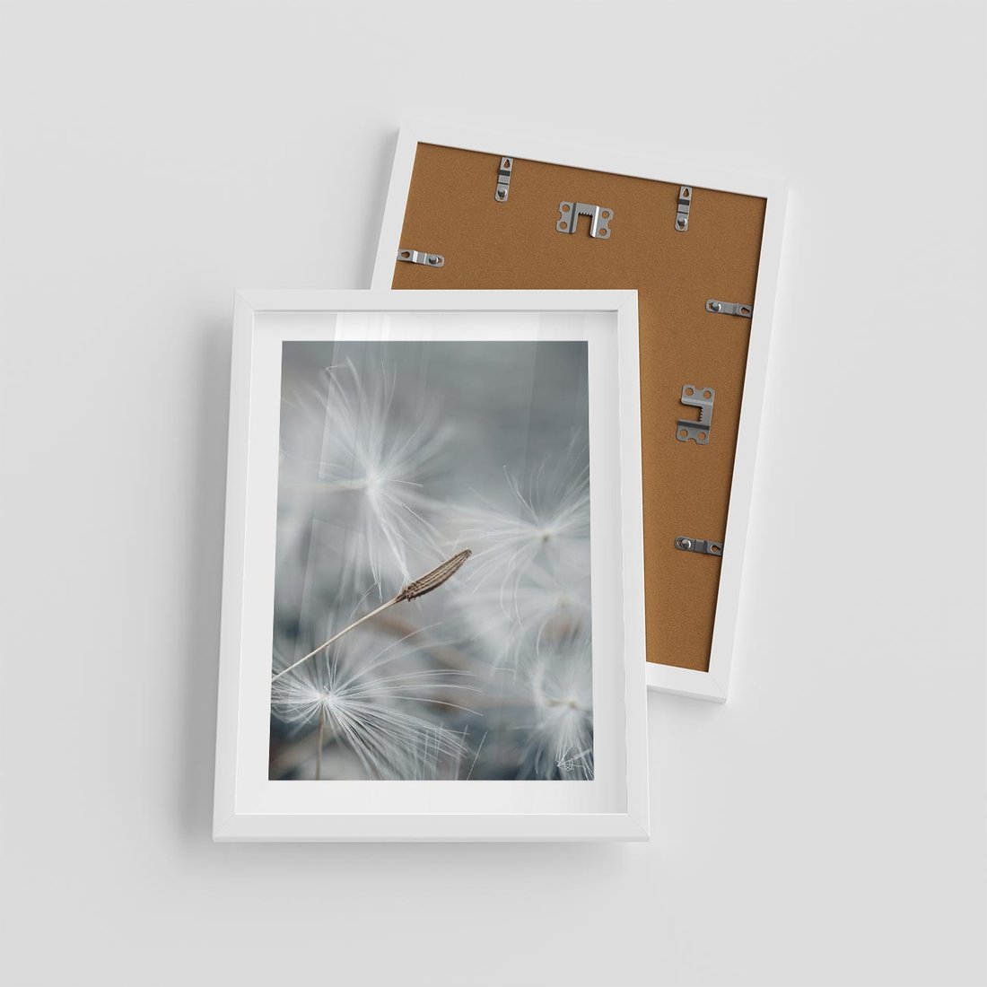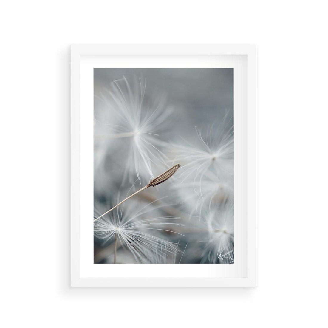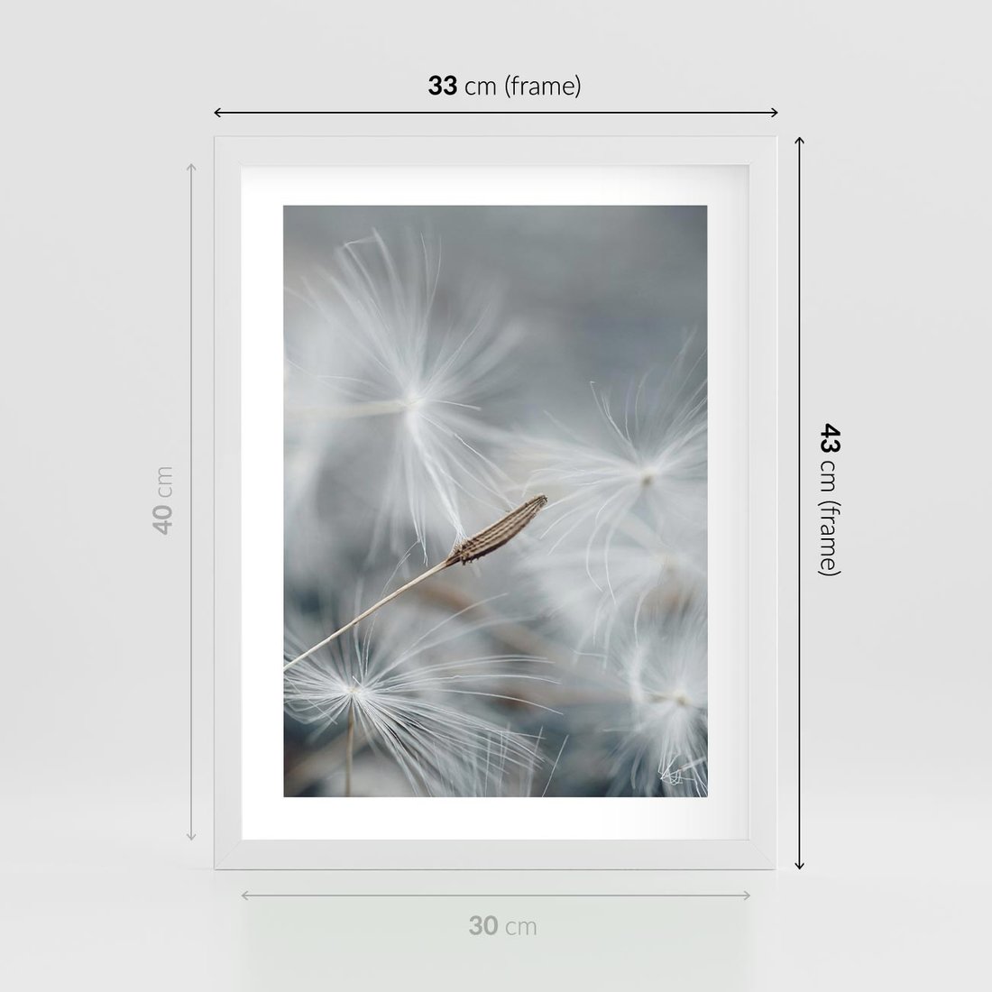 Plakat w ramie 30x40 - Piękno w Delikatności - dmuchawiec, makro zdjęcie - rama biała