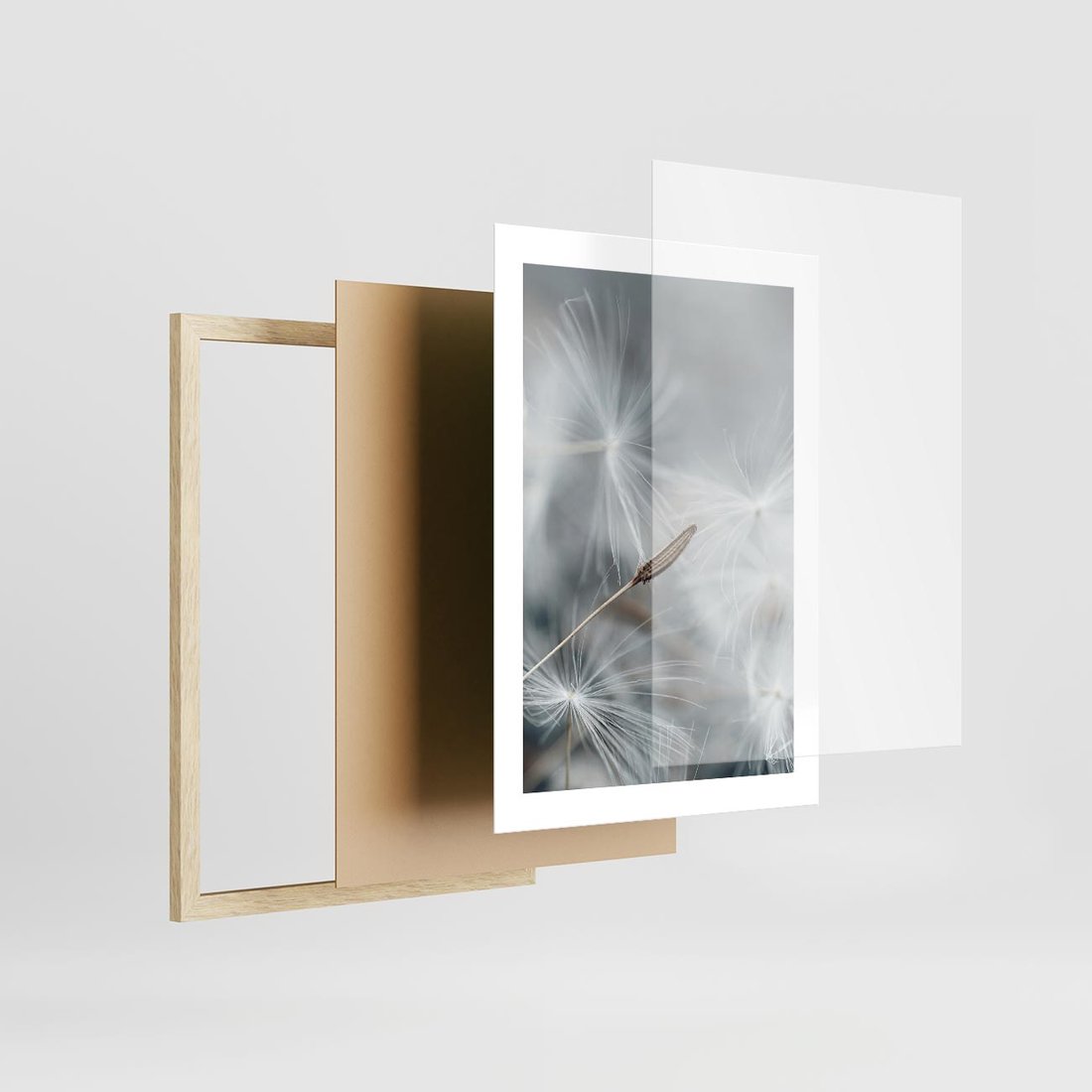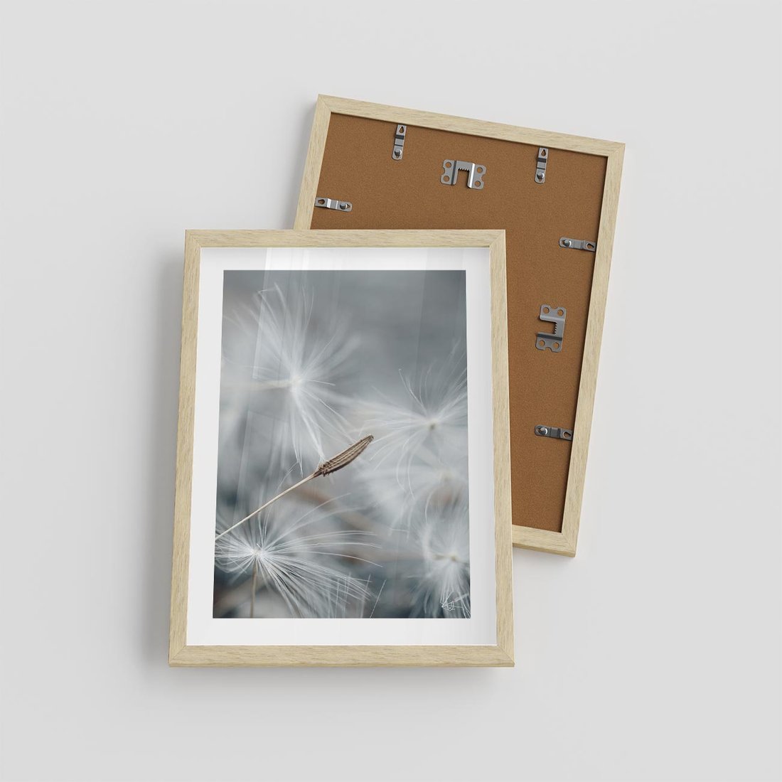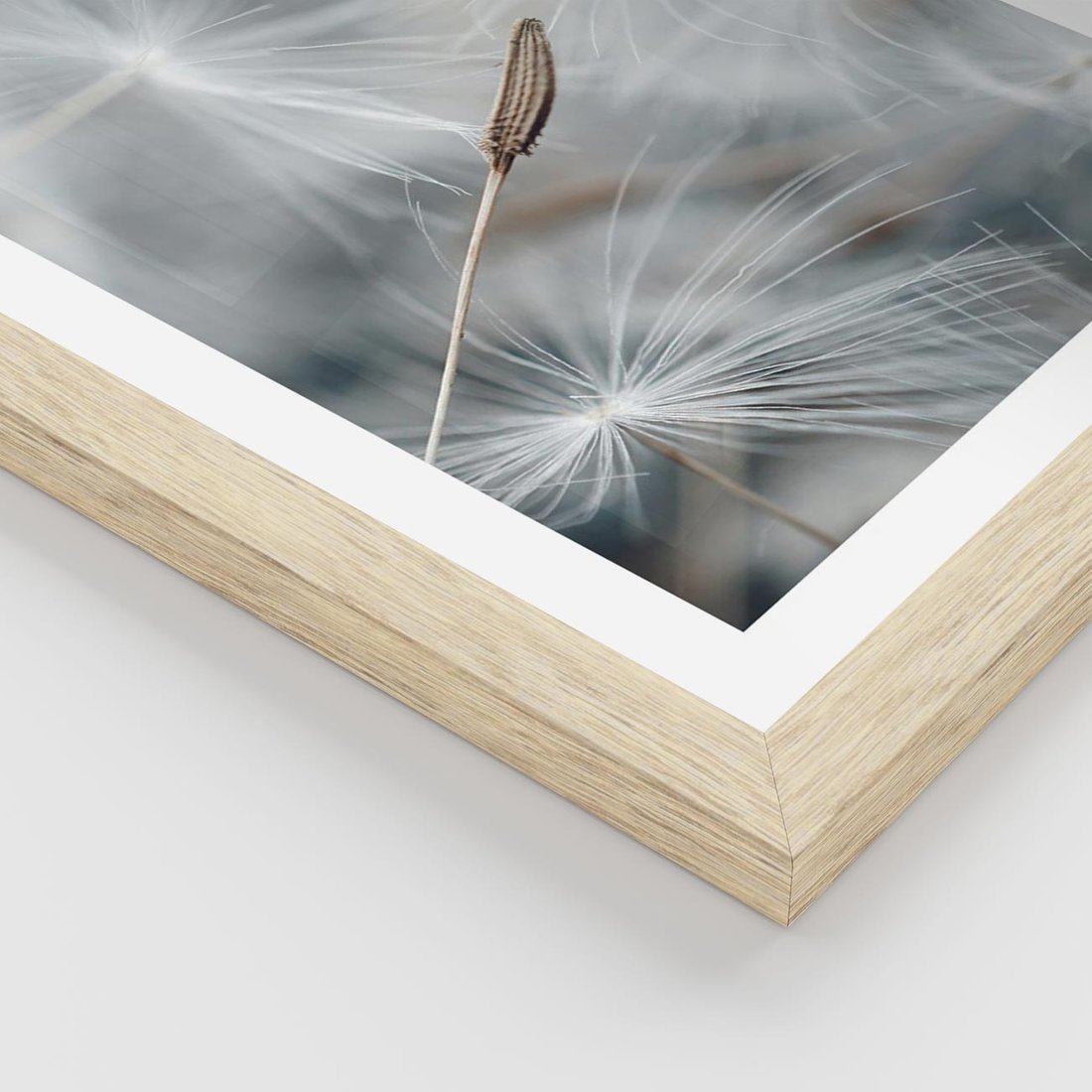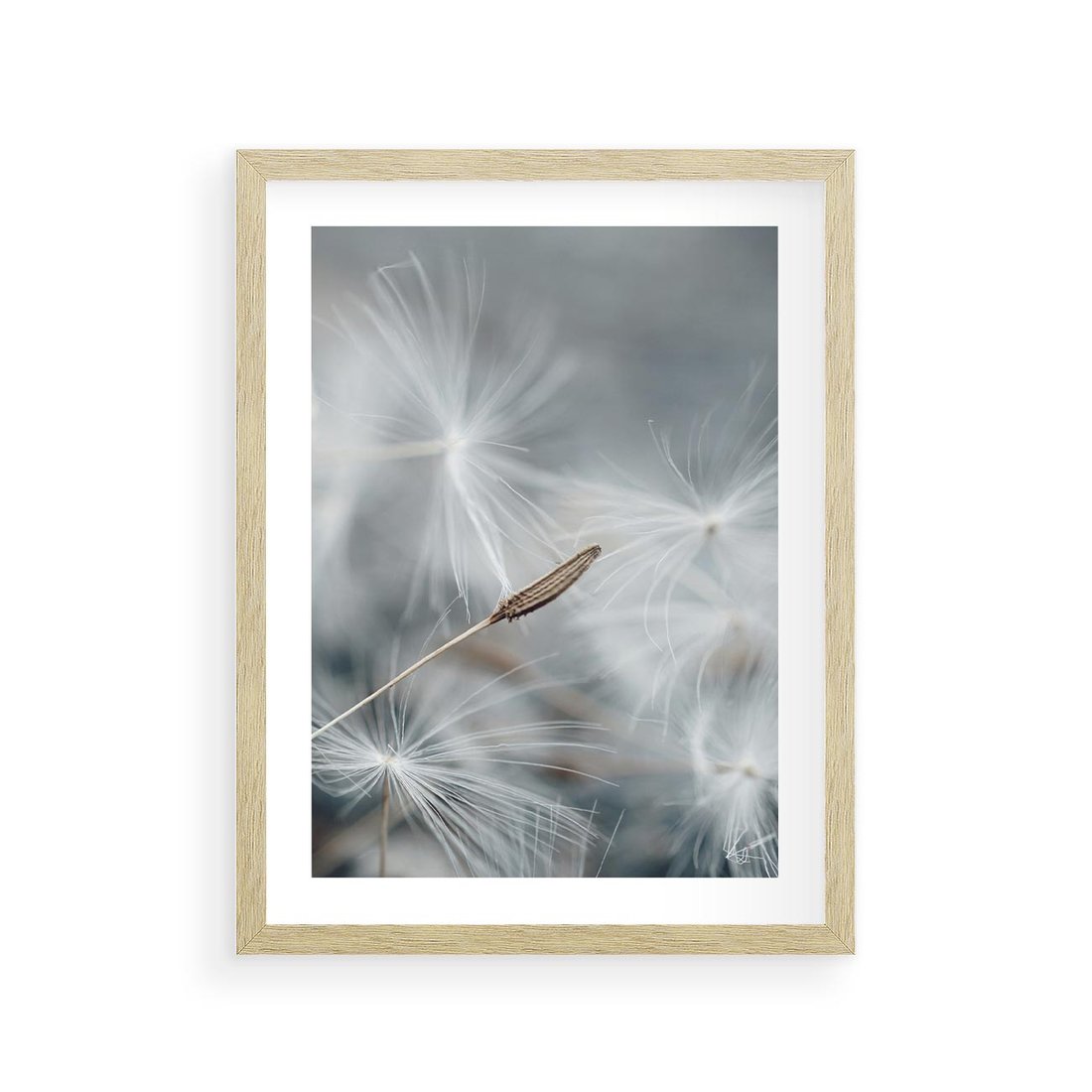 Plakat w ramie 30x40 - Piękno w Delikatności - dmuchawiec, makro zdjęcie - rama drewno