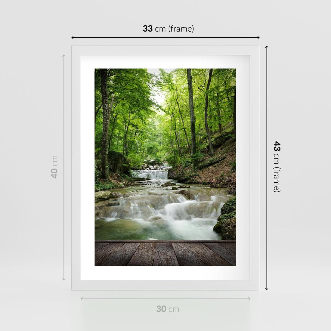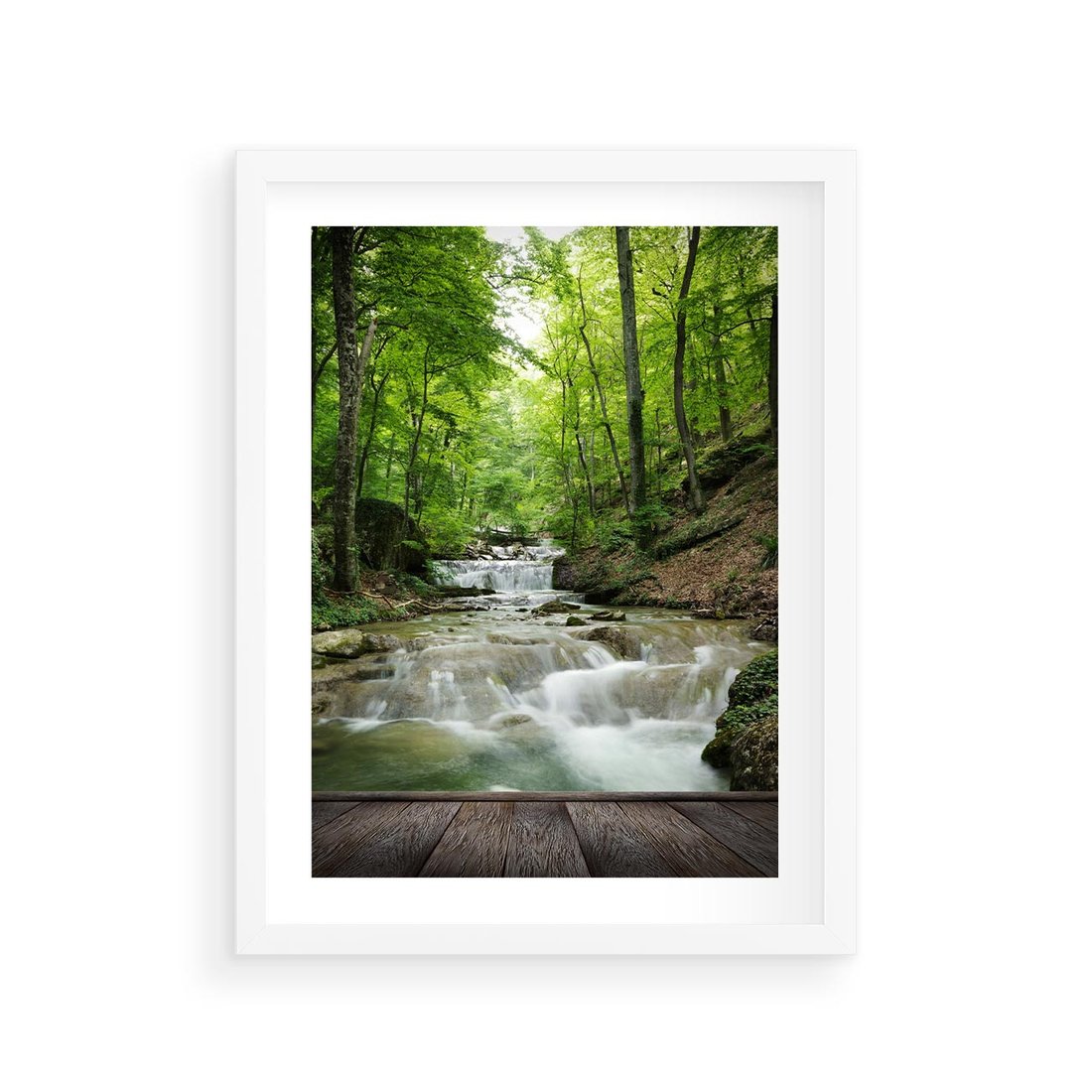Plakat w ramie 30x40 - Plączący się strumień - rzeka, strumień - rama biała