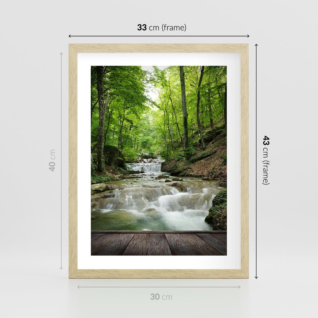 Plakat w ramie 30x40 - Plączący się strumień - rzeka, strumień - rama drewno