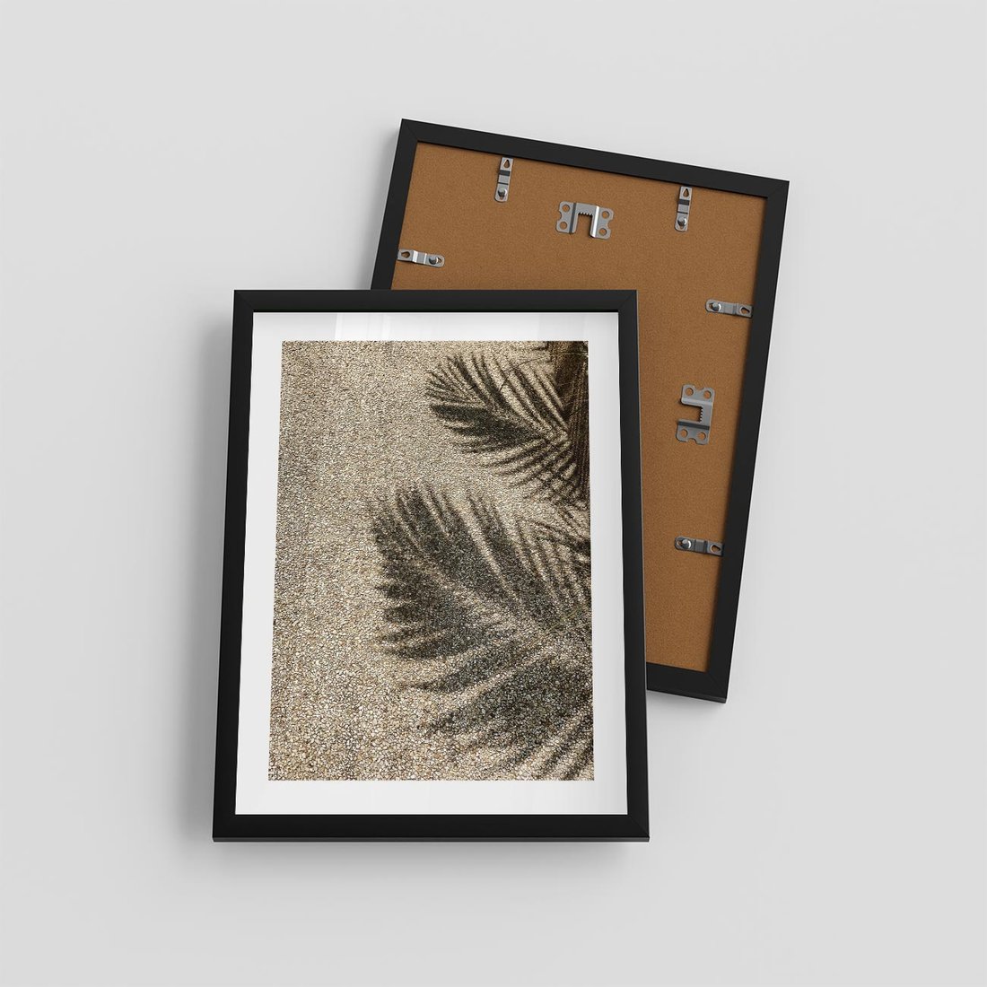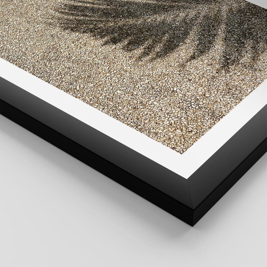 Plakat w ramie 30x40 - Plażowa Idylla - palma, cień na piasku - rama czarna