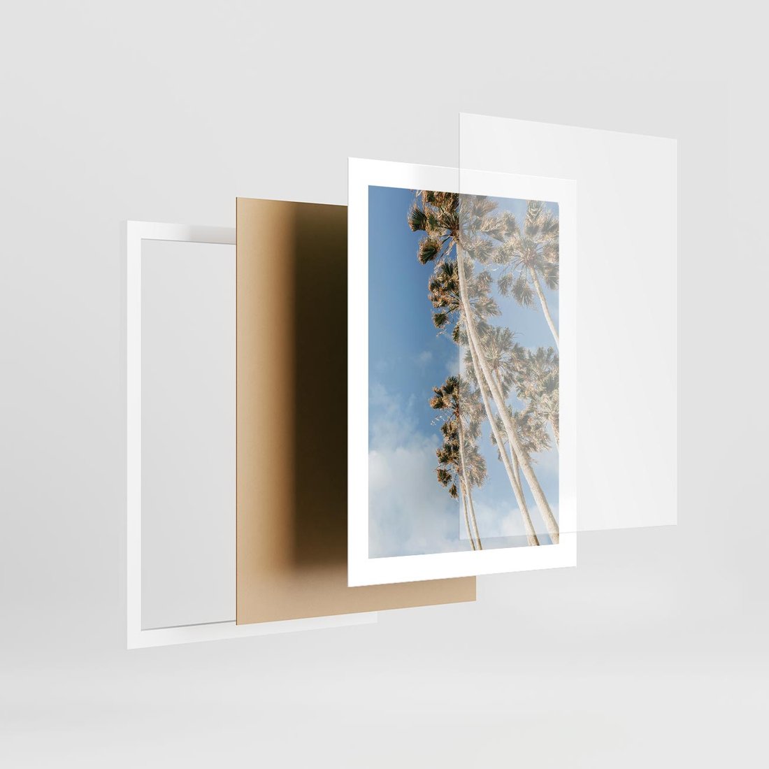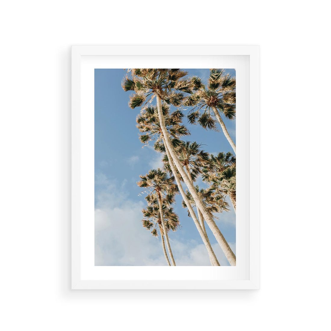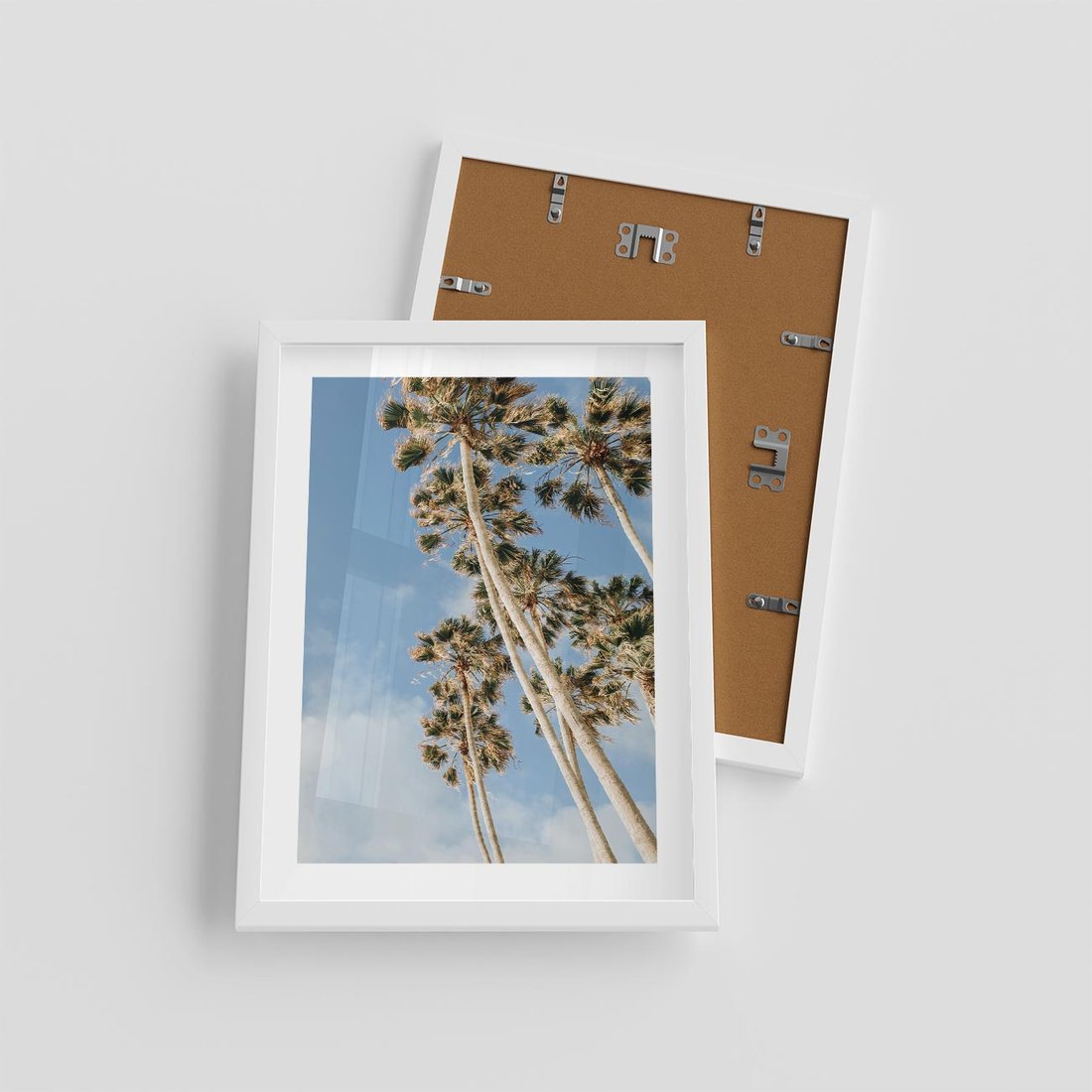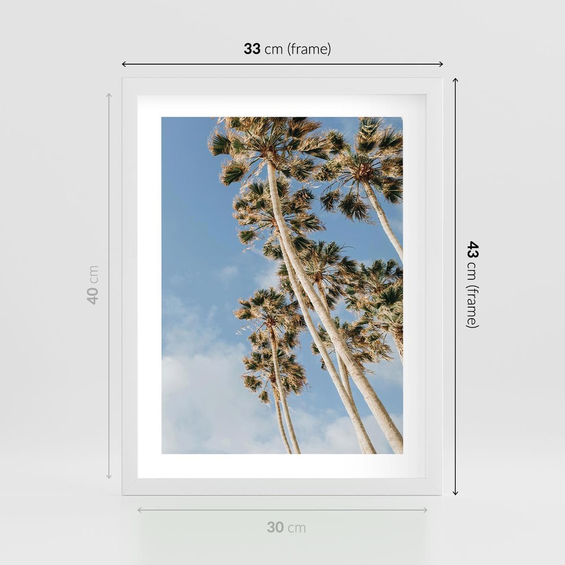 Plakat w ramie 30x40 - Pod Niebem Palmy - palmy na niebieskim niebie - rama biała