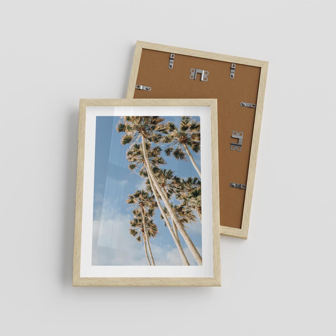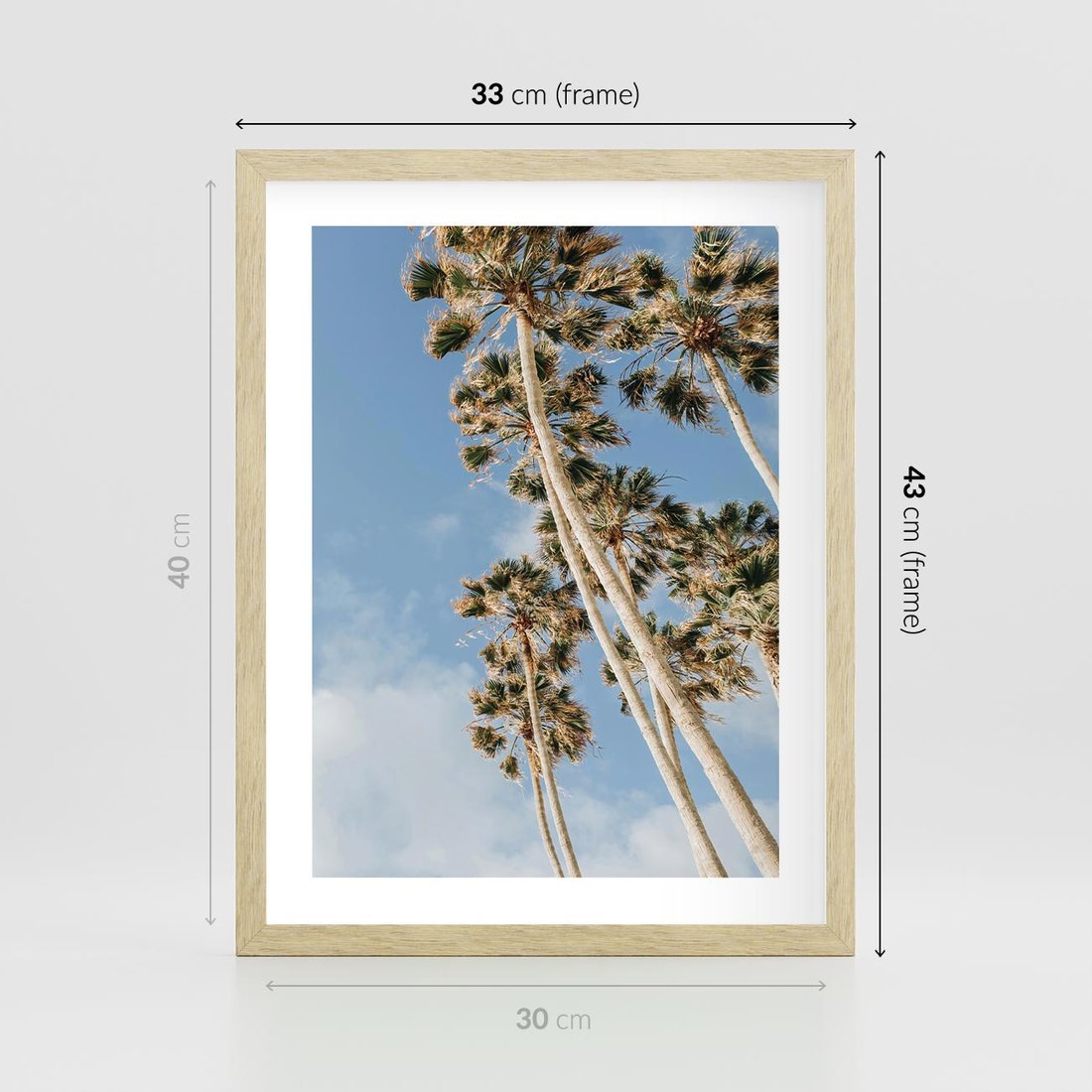 Plakat w ramie 30x40 - Pod Niebem Palmy - palmy na niebieskim niebie - rama drewno