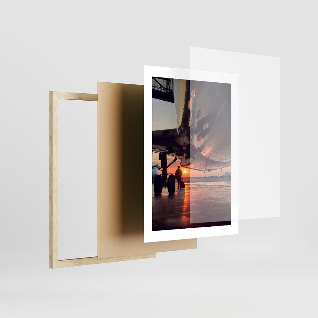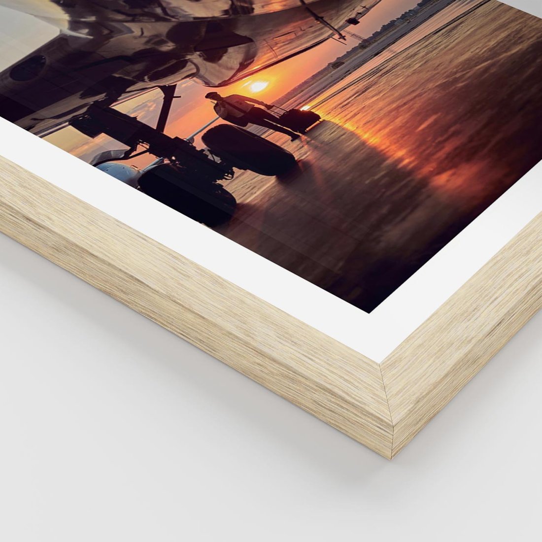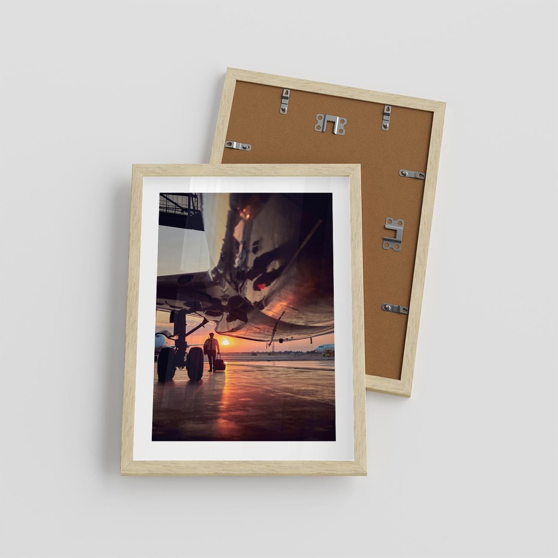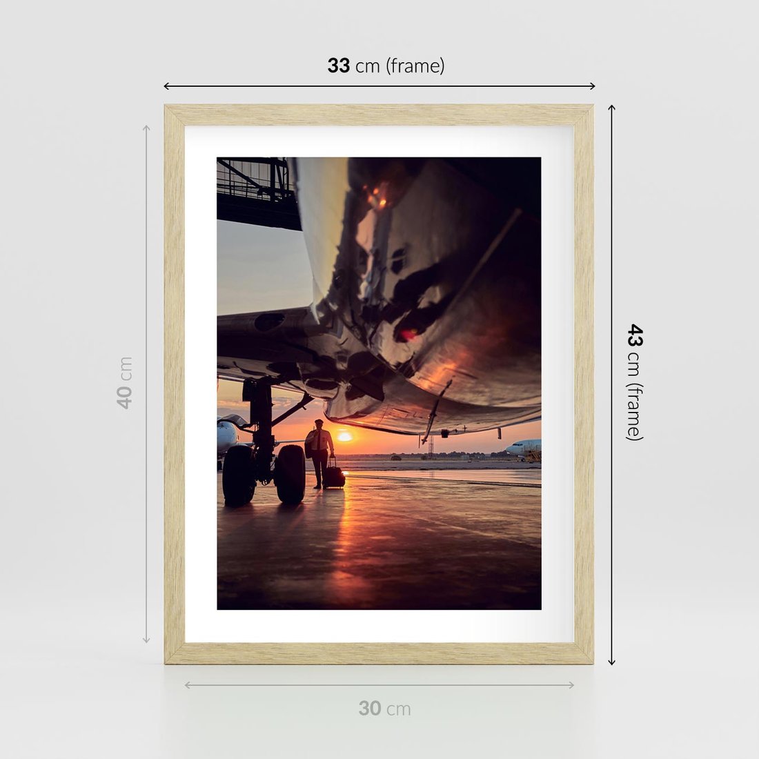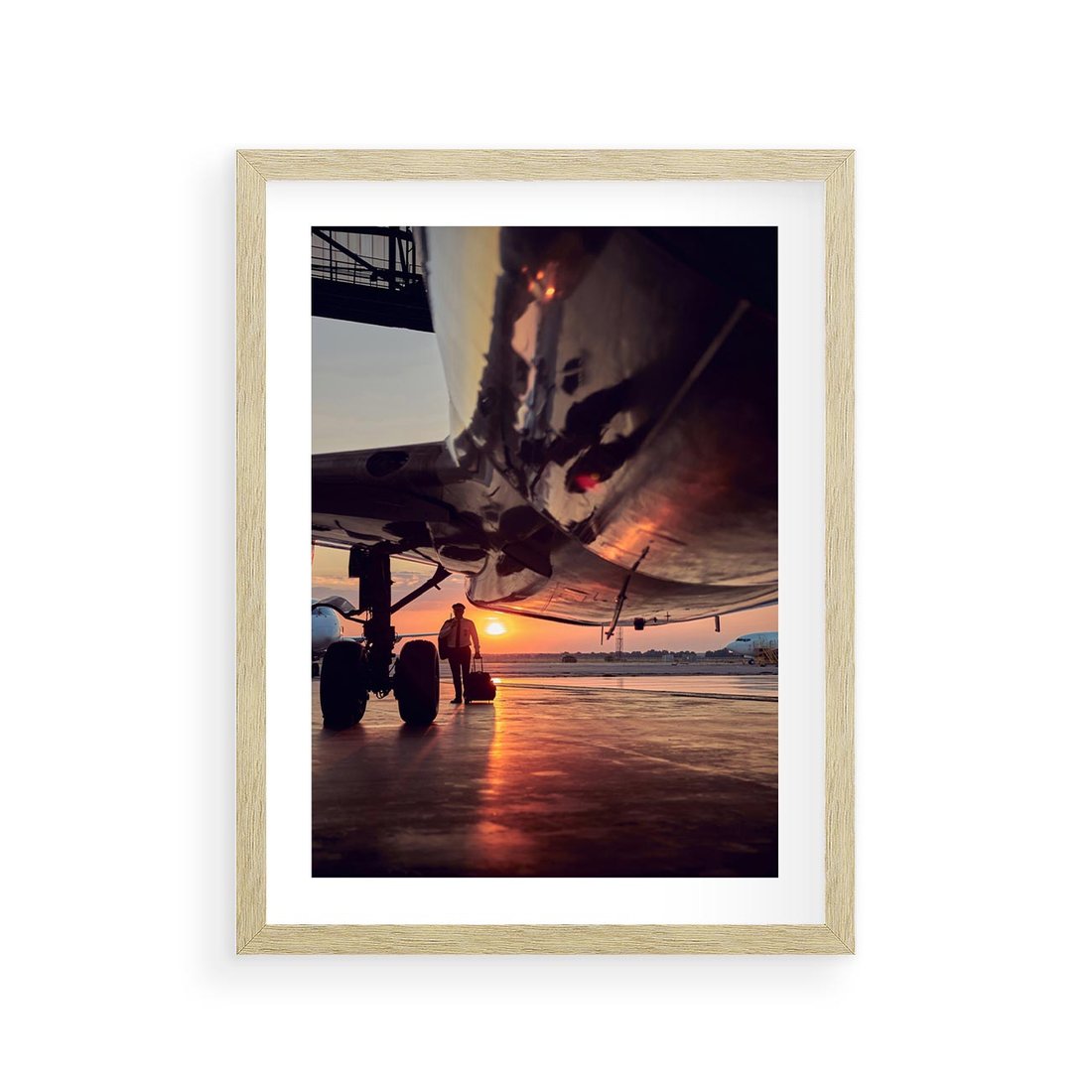 Plakat w ramie 30x40 - Podróż ku Zachodzącemu Słońcu - samolot, scena na lotnisku - rama drewno