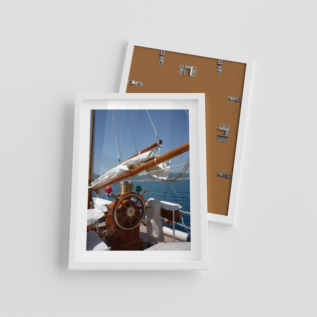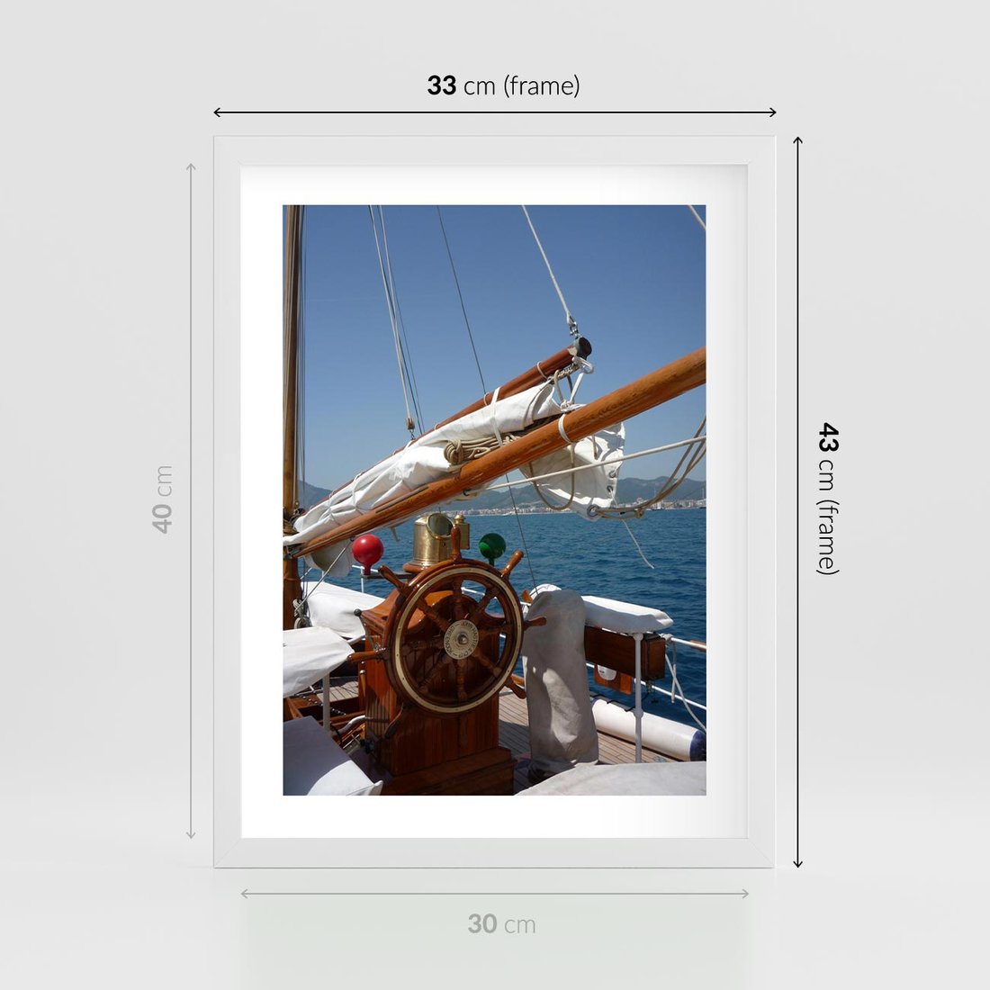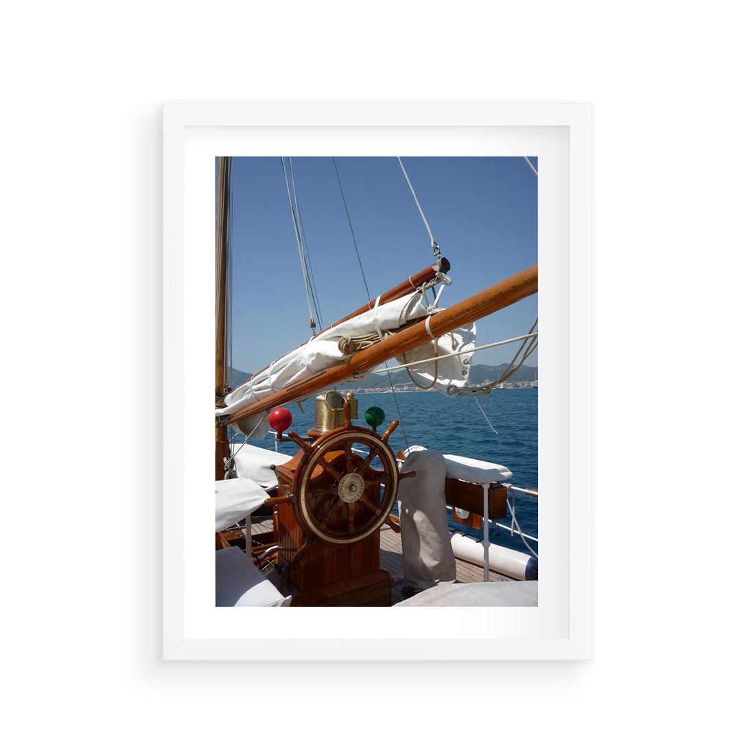 Plakat w ramie 30x40 - Podróż Morska - statek, ster - rama biała