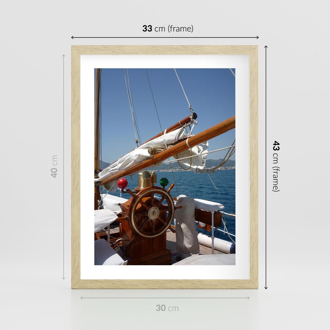 Plakat w ramie 30x40 - Podróż Morska - statek, ster - rama drewno