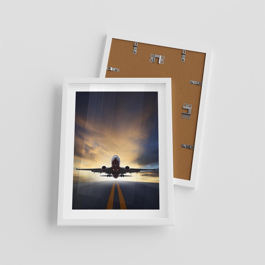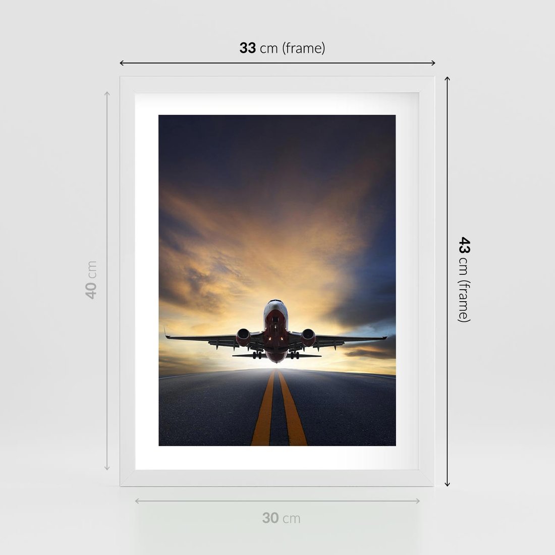 Plakat w ramie 30x40 - Podróż samolotem w pejzaż - samolot, podróż - rama biała