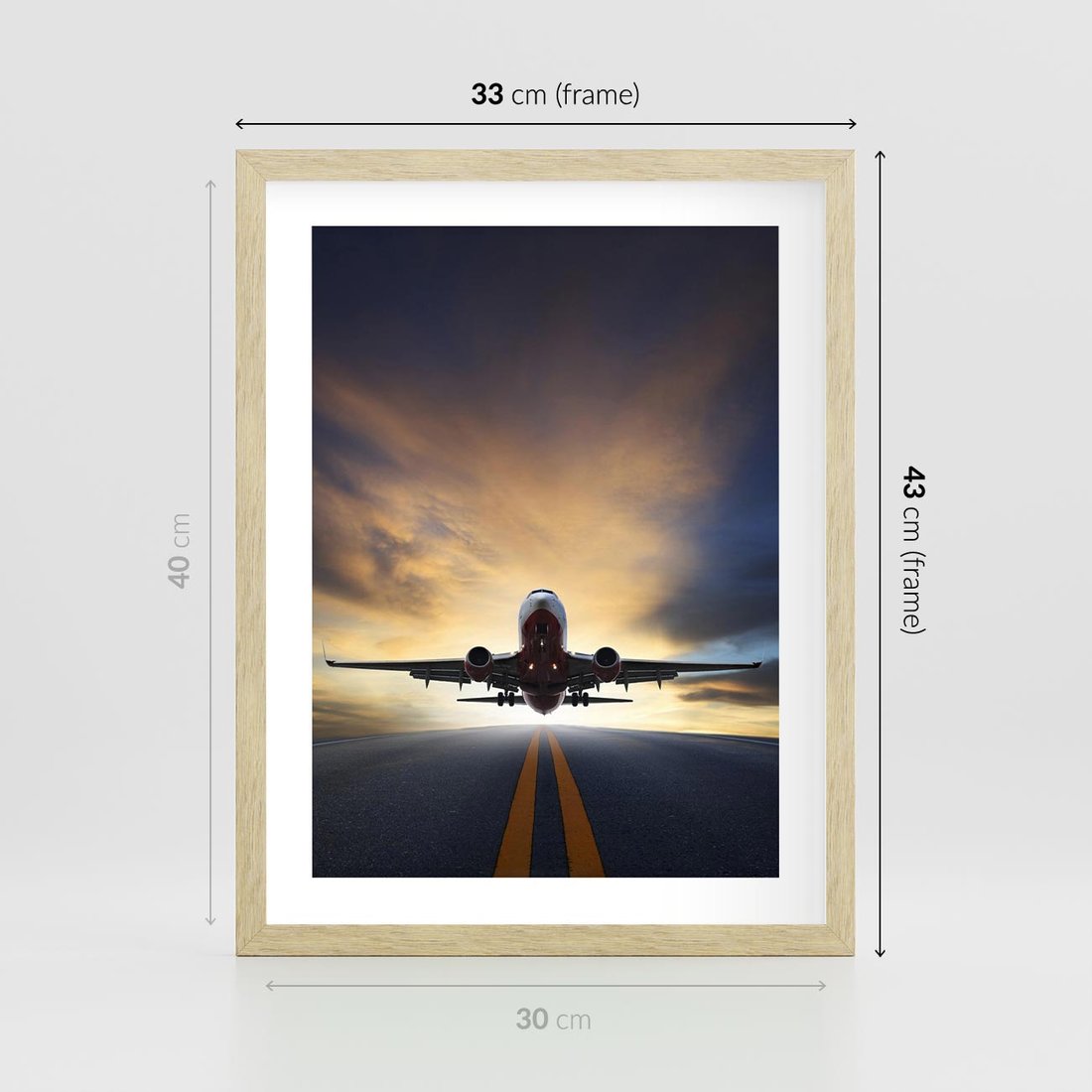 Plakat w ramie 30x40 - Podróż samolotem w pejzaż - samolot, podróż - rama drewno