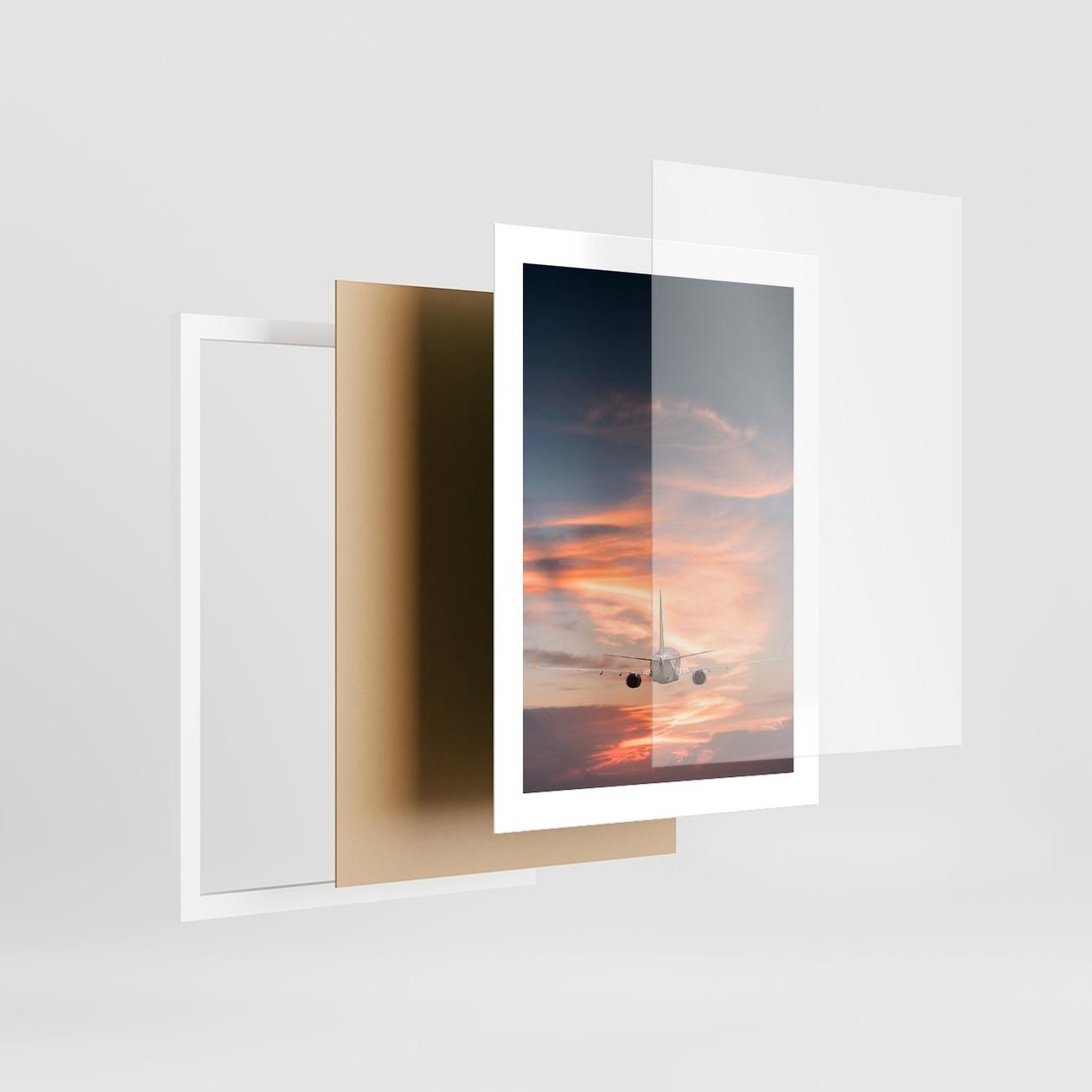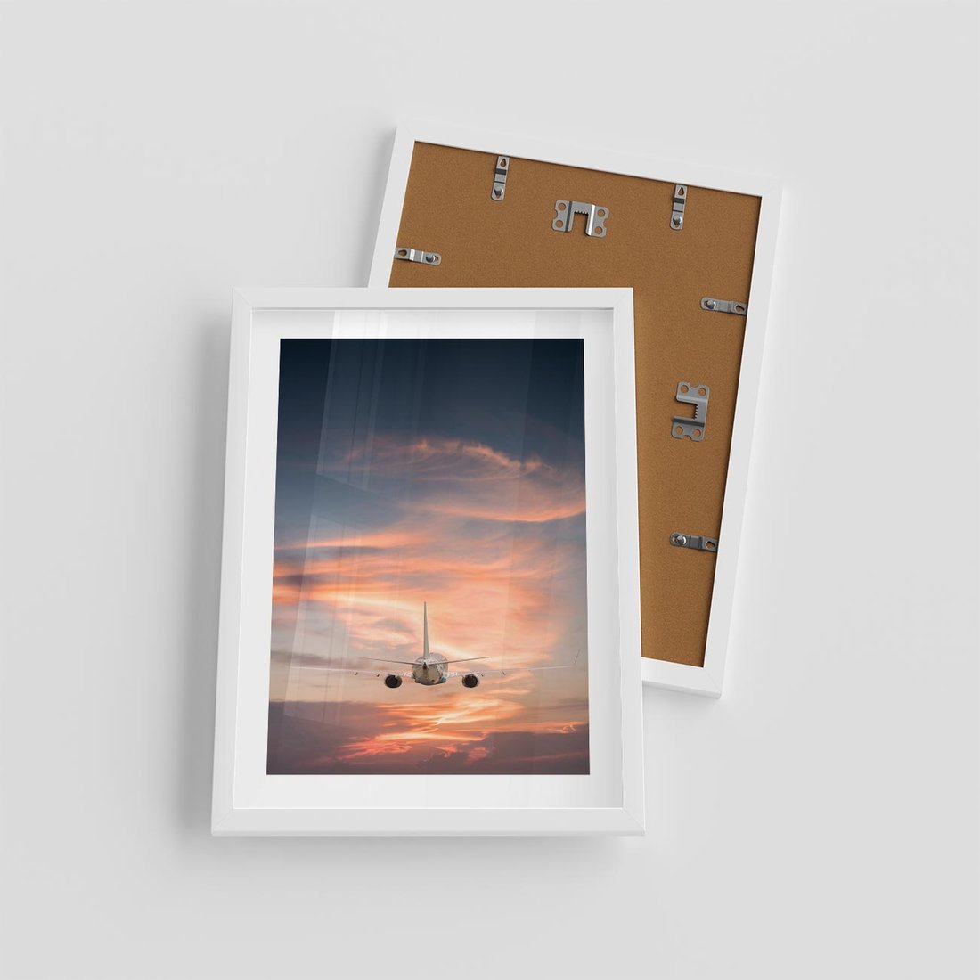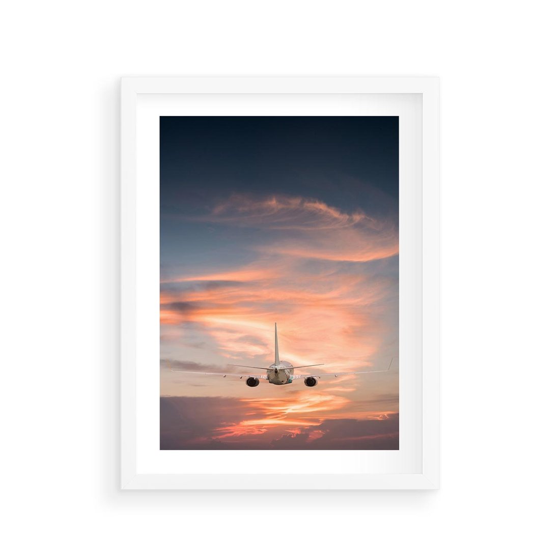 Plakat w ramie 30x40 - Podróż w Kierunku Słońca - samolot, samolot w powietrzu - rama biała
