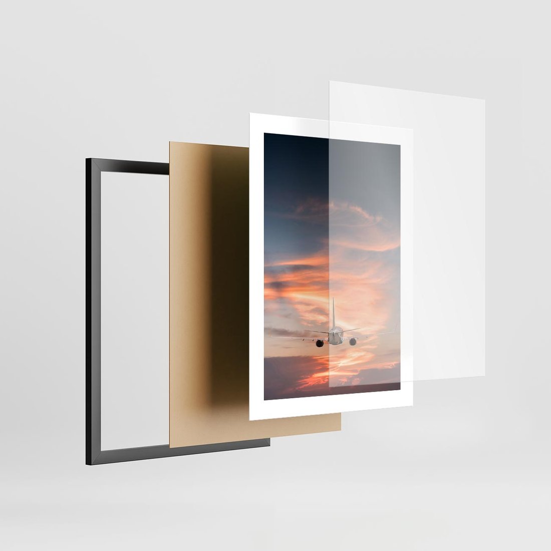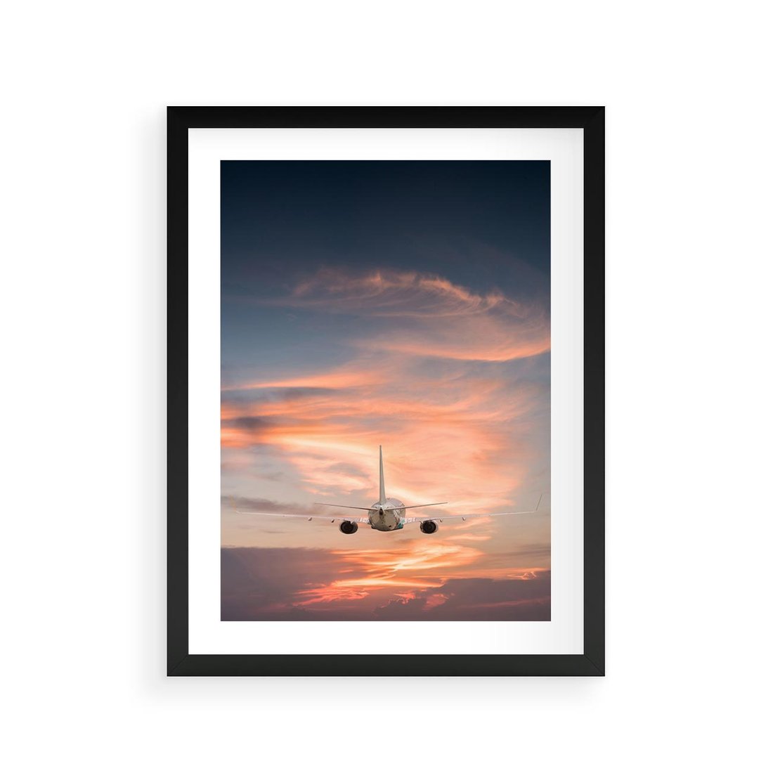 Plakat w ramie 30x40 - Podróż w Kierunku Słońca - samolot, samolot w powietrzu - rama czarna