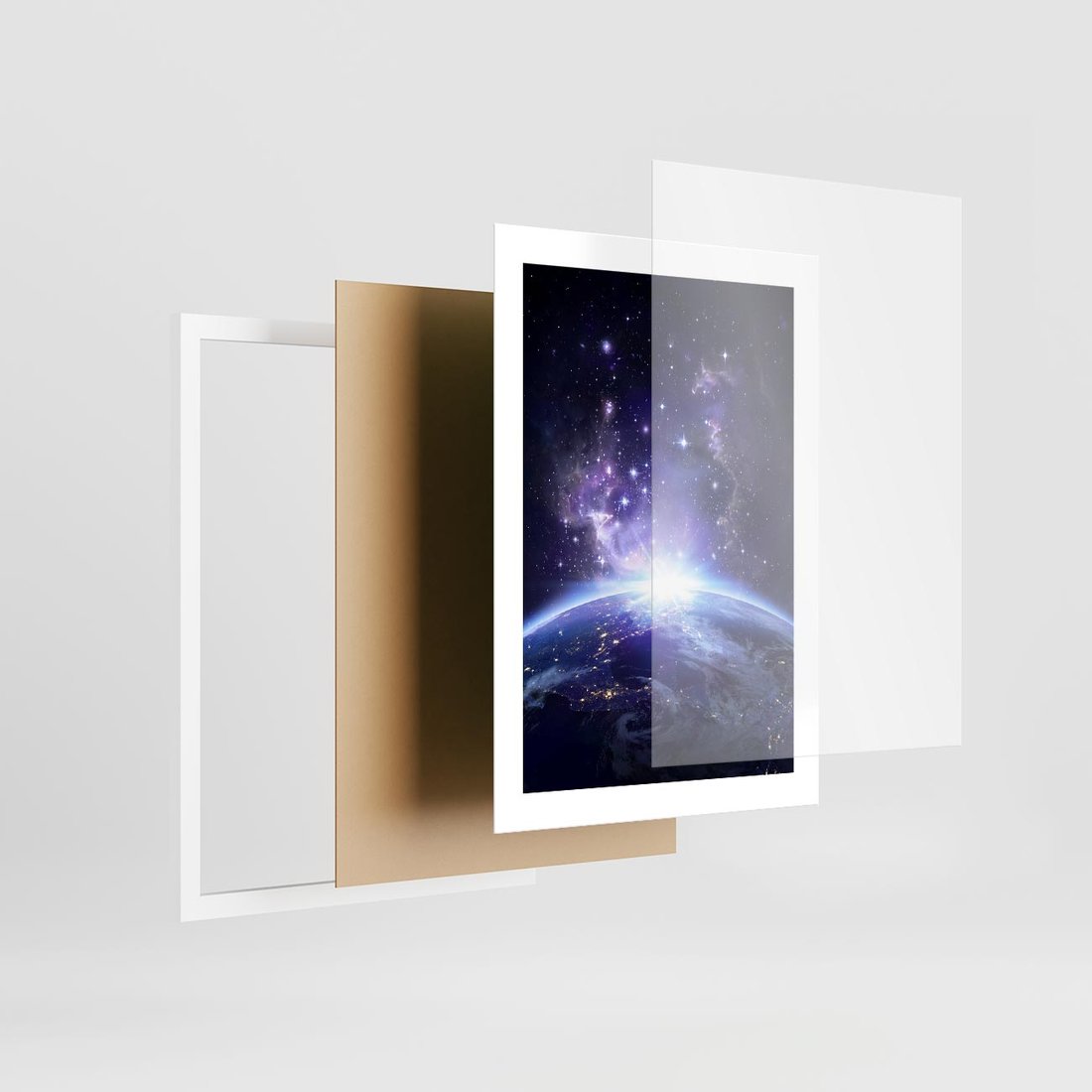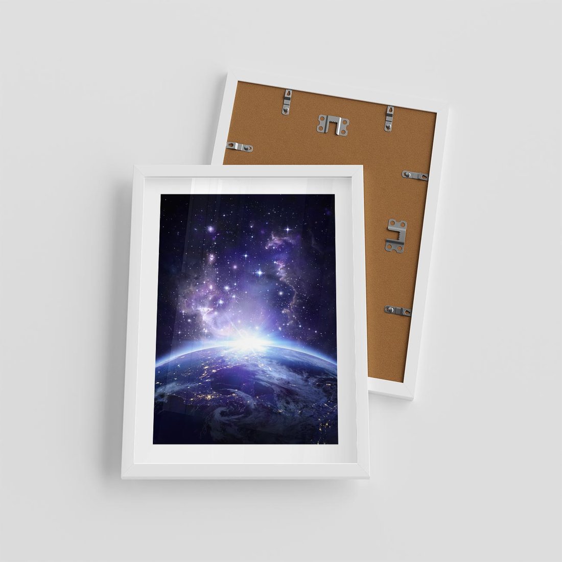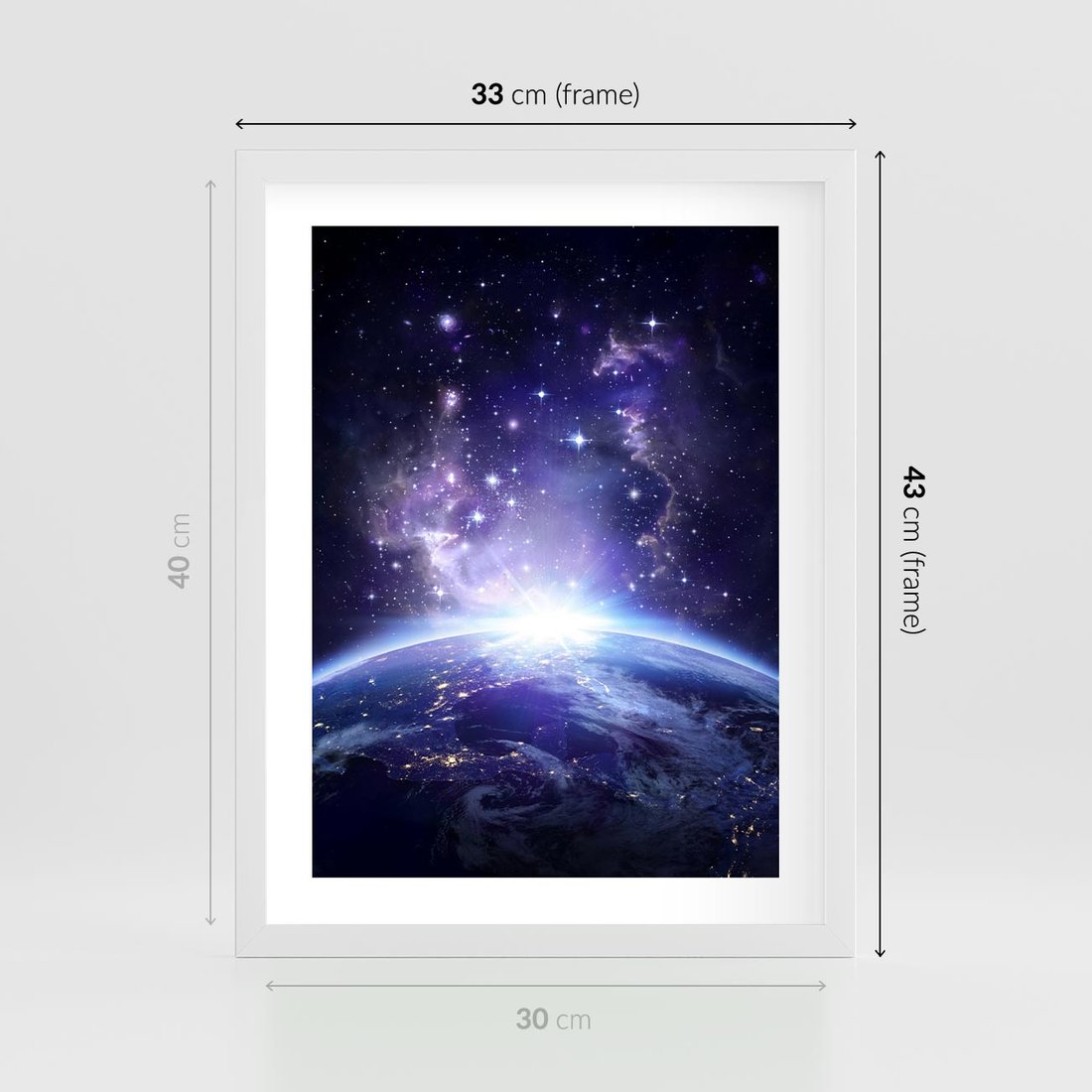 Plakat w ramie 30x40 - Podróż w kosmiczną przestrzeń - kosmos, ziemia - rama biała