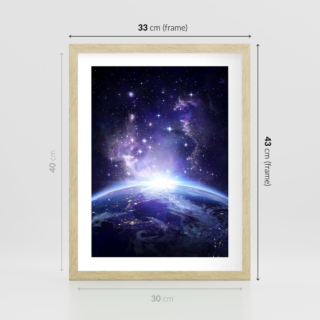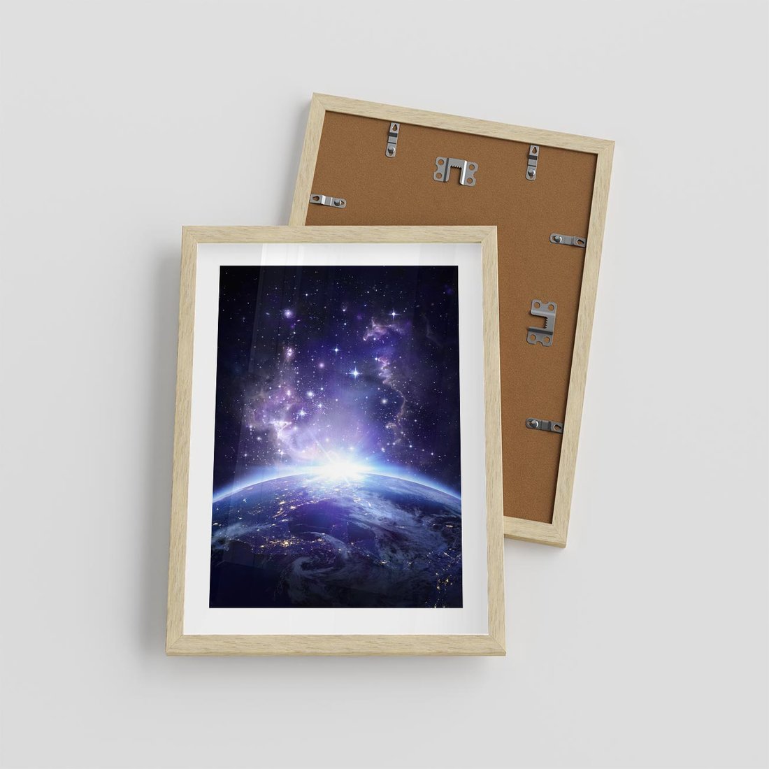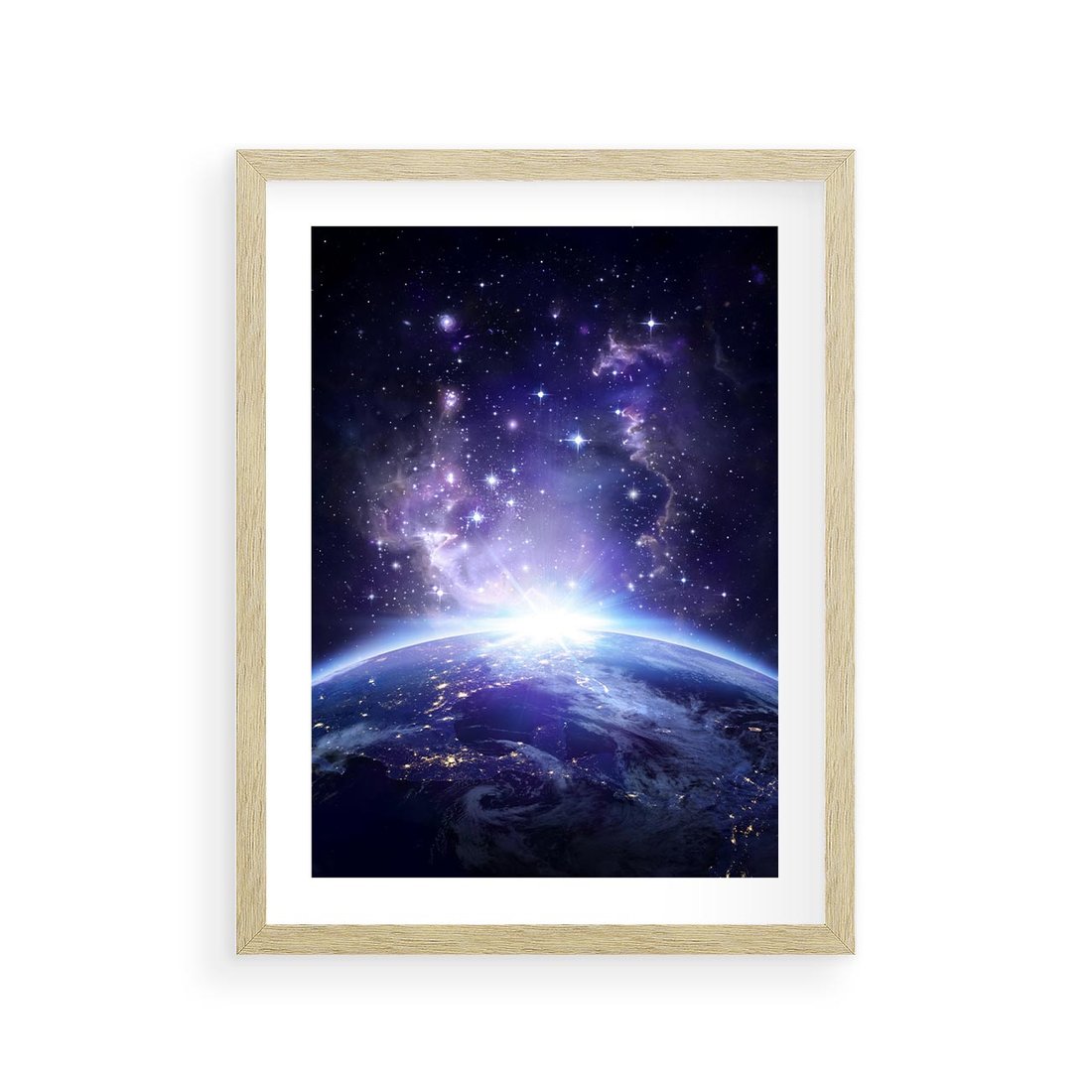 Plakat w ramie 30x40 - Podróż w kosmiczną przestrzeń - kosmos, ziemia - rama drewno