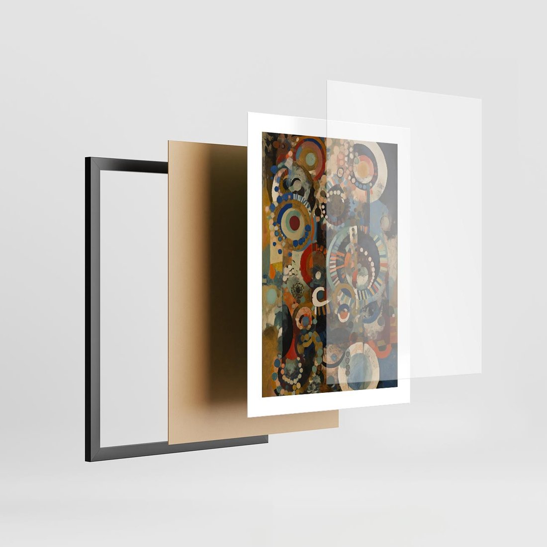 Plakat w ramie 30x40 - Podróżne Wizje Aberracji - abstrakcyjny obraz, mnogość kolorów - rama czarna