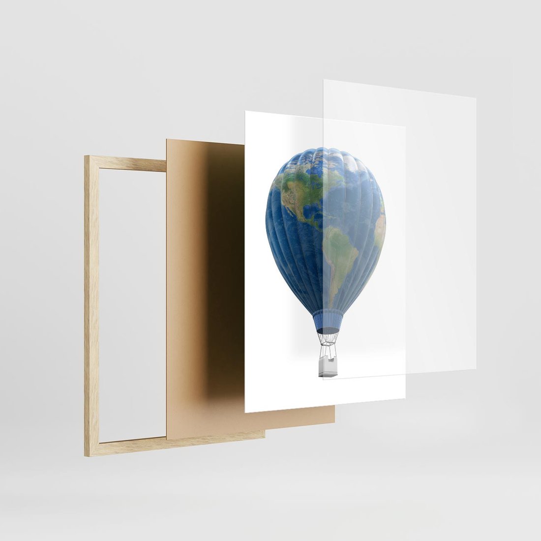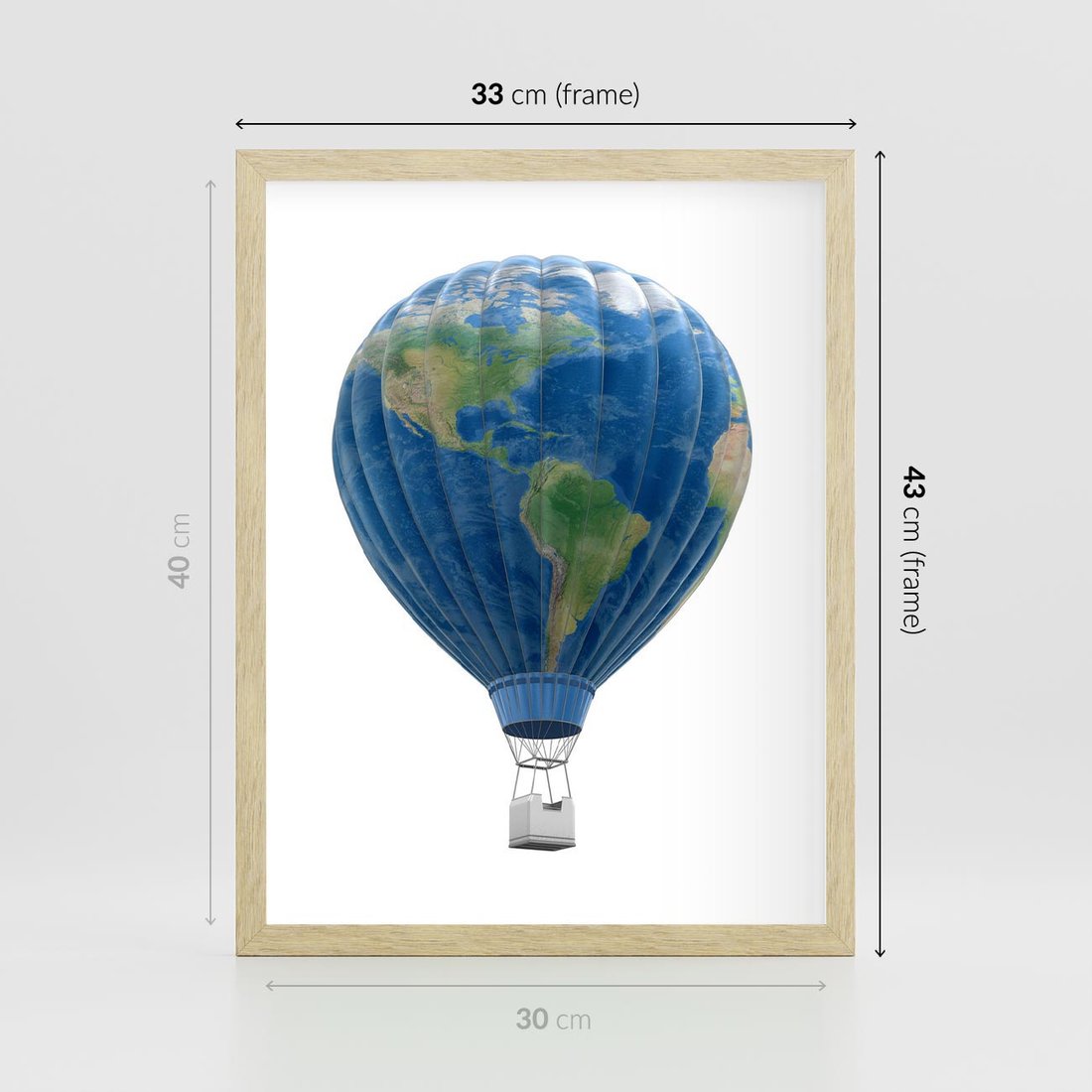 Plakat w ramie 30x40 - Podróżniczy balon nad ziemią - balon, ziemia - rama drewno
