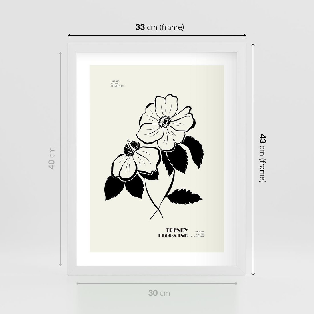 Plakat w ramie 30x40 - Poezja kwiecistej kreski - kwiaty, minimalistyczne - rama biała