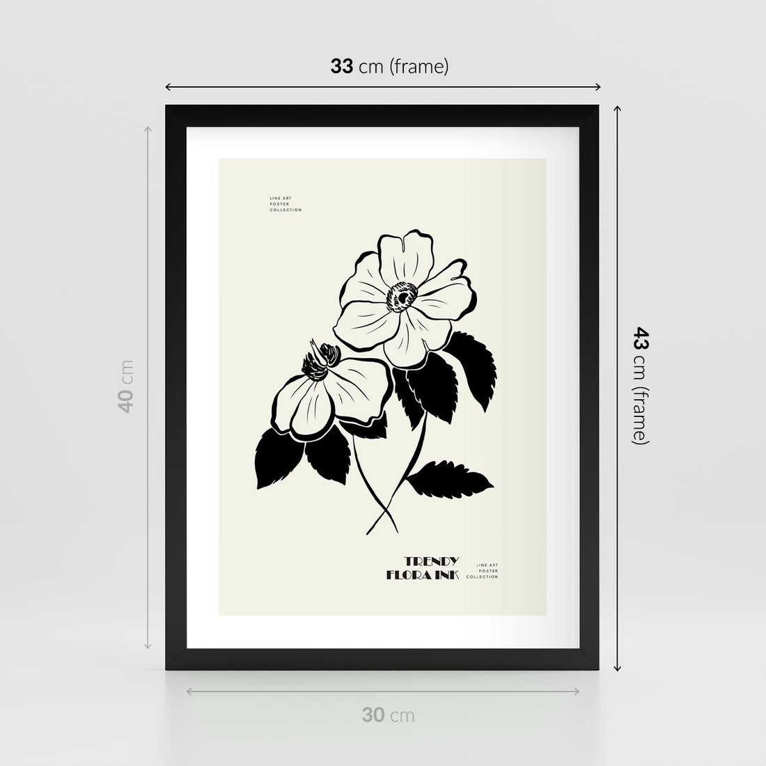 Plakat w ramie 30x40 - Poezja kwiecistej kreski - kwiaty, minimalistyczne - rama czarna