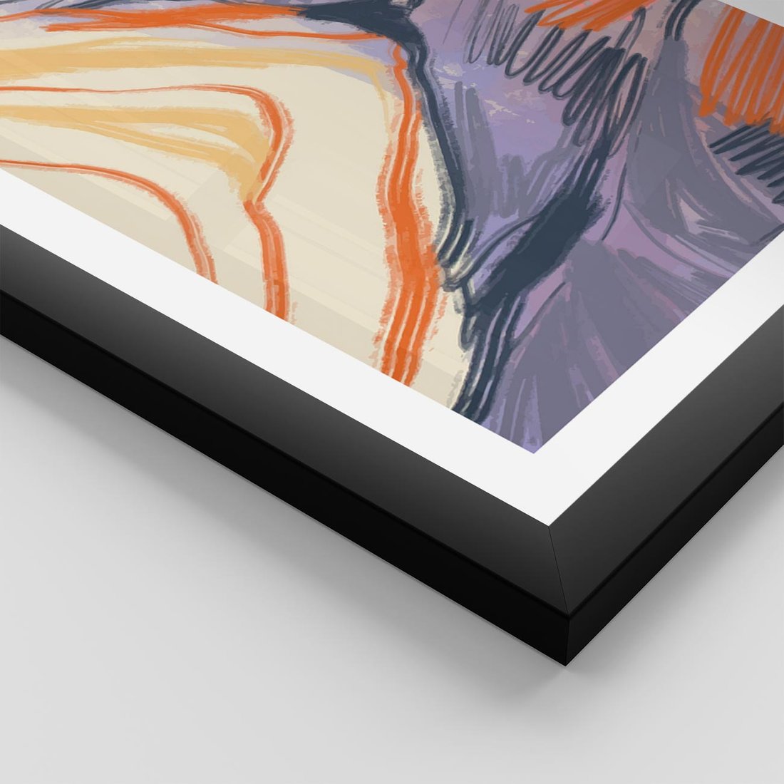 Ten abstrakcyjny plakat prezentuje fascynujące formy w odcieniach pomarańczu i fioletu. To dzieło sztuki wnosi do Twojej przestrzeni energię i ekspresję, jednocześnie pozostając nowoczesne i tajemnicze. Idealny wybór dla tych, którzy cenią abstrakcyjne kompozycje i intensywne kolory.
