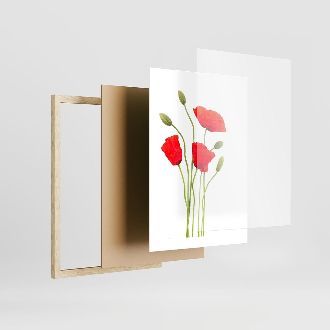 Plakat w ramie 30x40 - Pola maków w pełnym kolorze - maki, kwiaty - rama drewno