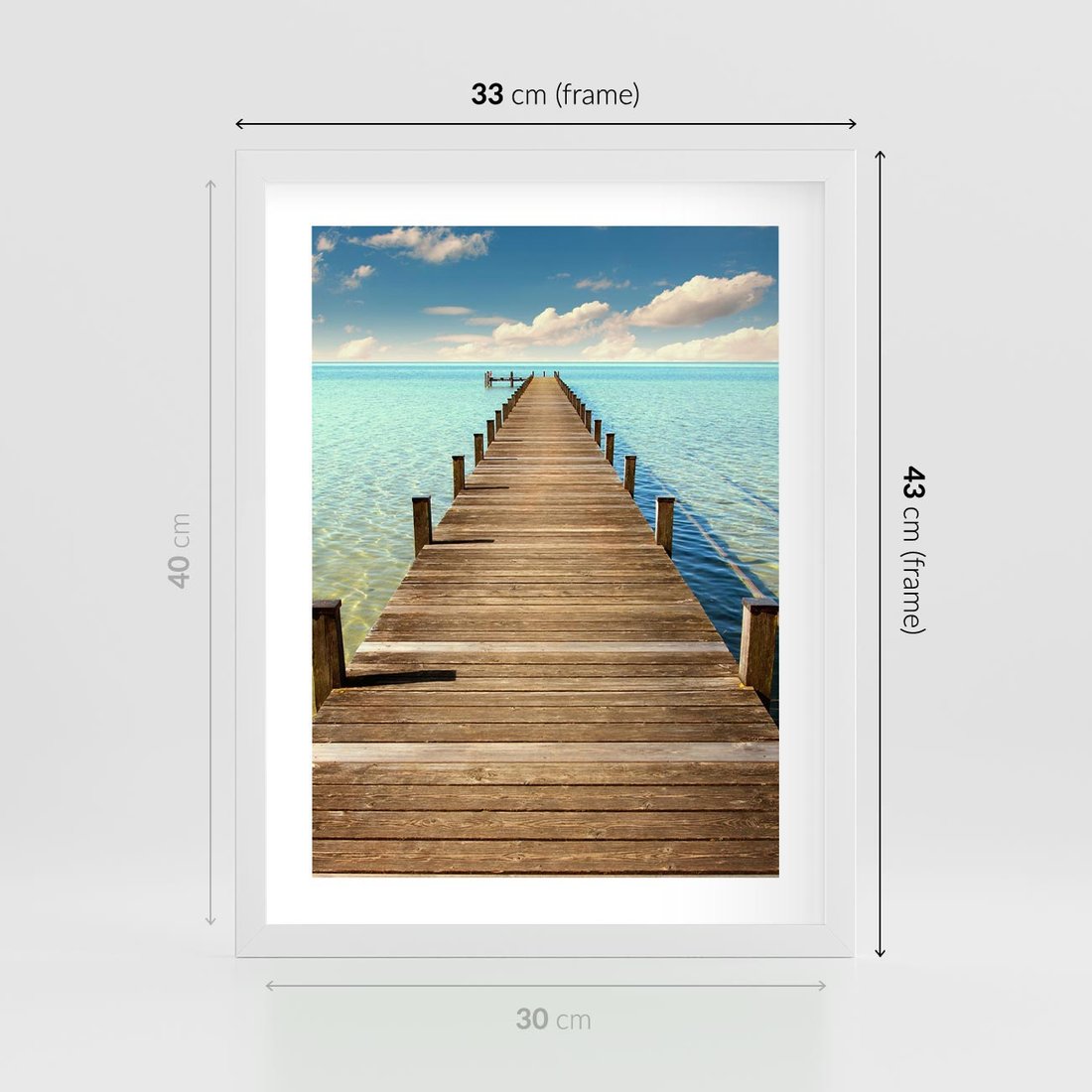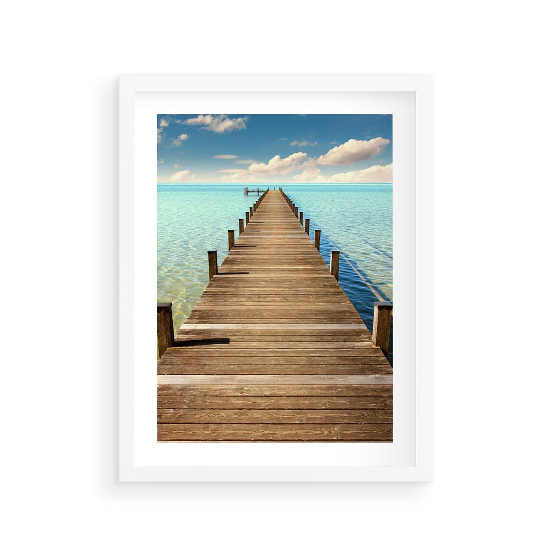 Plakat w ramie 30x40 - Pomost nad morską przestrzenią - pomost, morze - rama biała