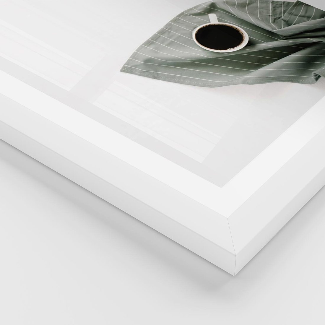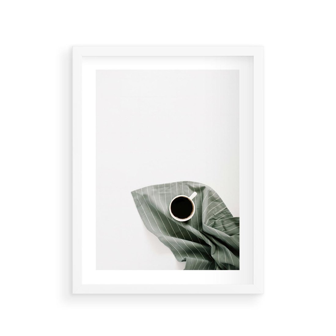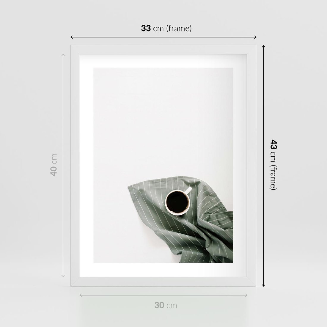 Plakat w ramie 30x40 - Poranek z Kawą - kawa, biała filiżanka - rama biała