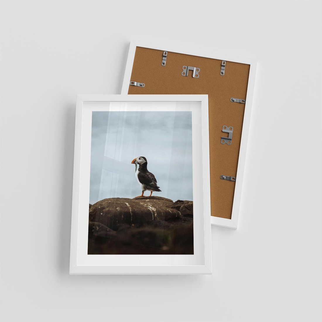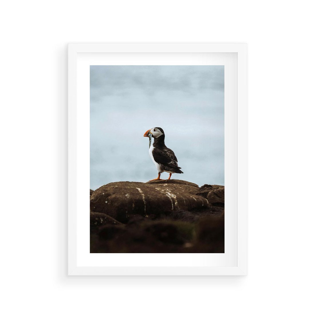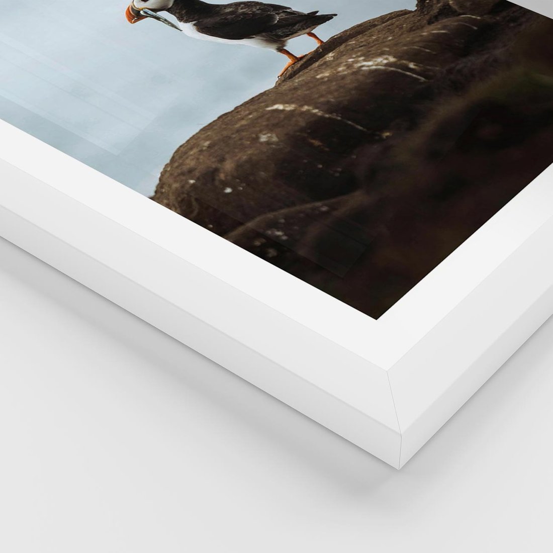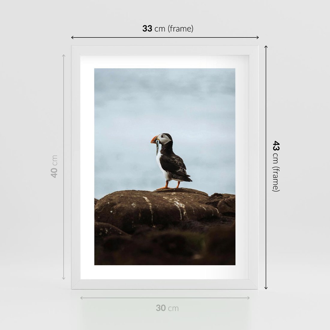Plakat w ramie 30x40 - Portret Ptaka Morskiego - maskonur, ptak - rama biała