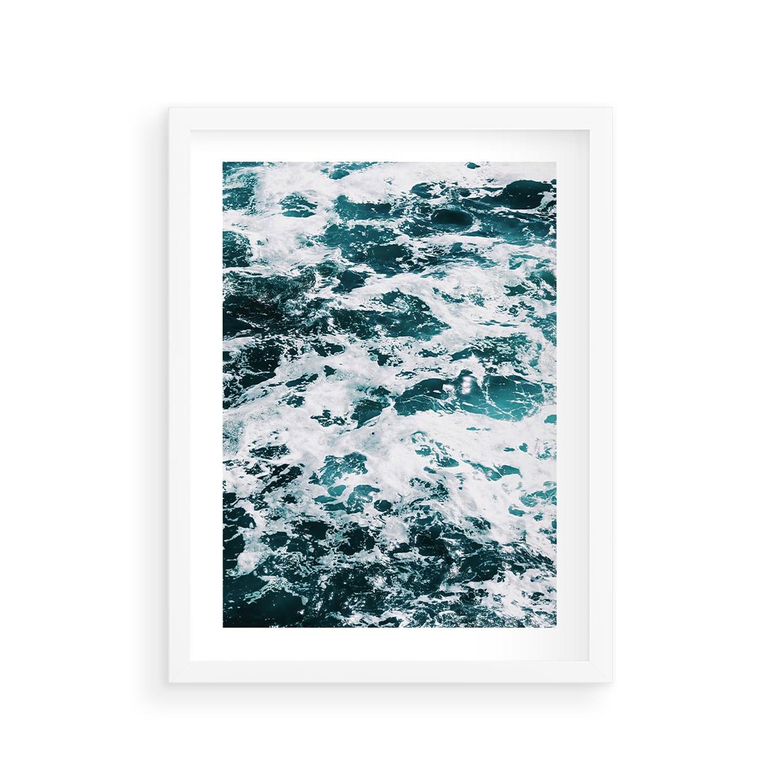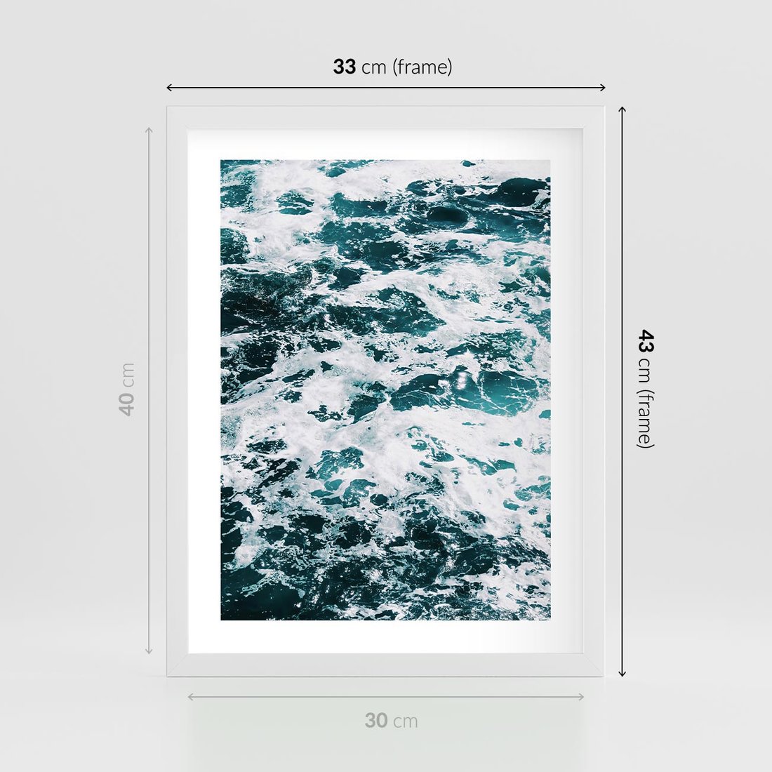 Plakat w ramie 30x40 - Potęga Natury: Wzburzone Fale Oceanu - wzburzone fale oceanu - rama biała