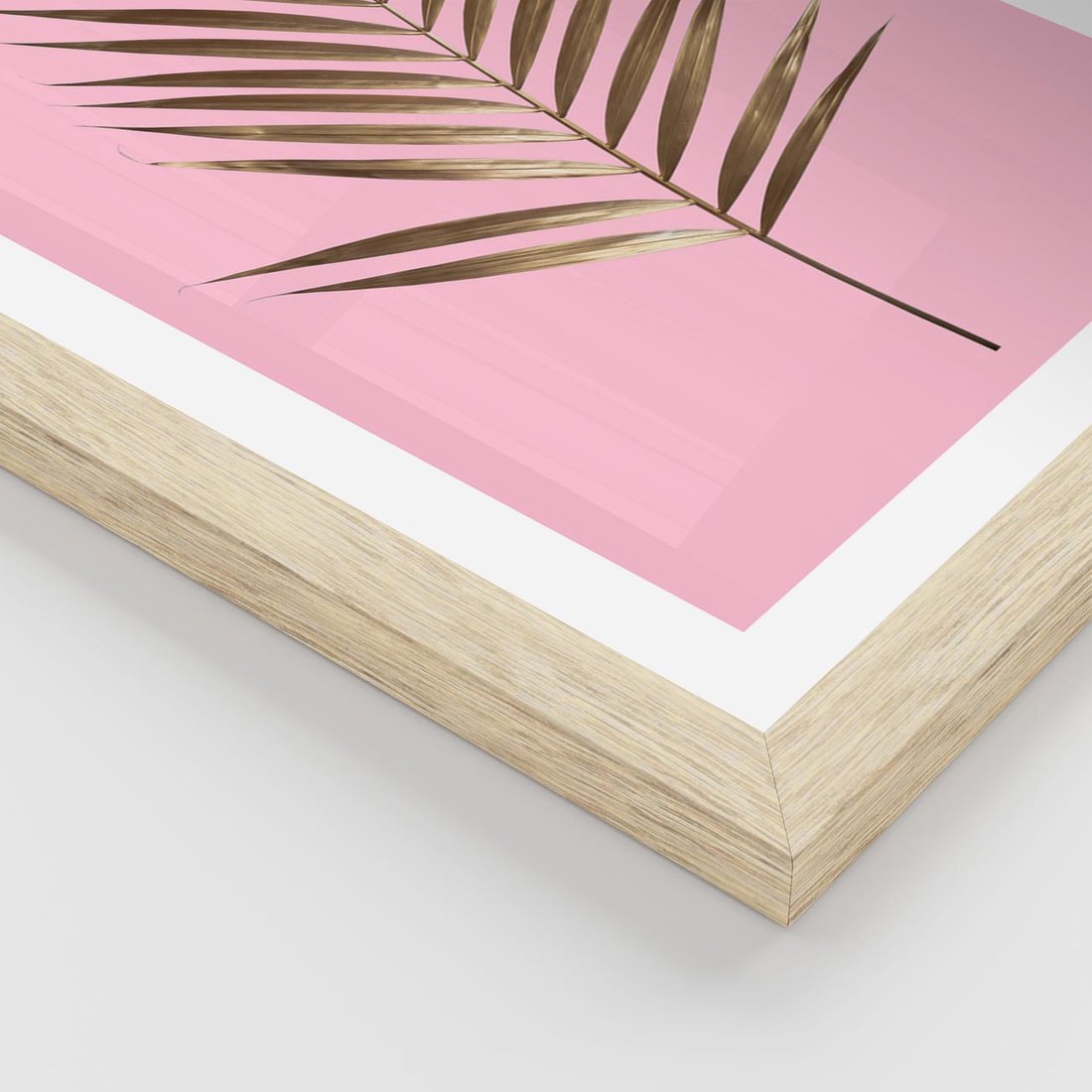 Plakat w ramie 30x40 - Promienie złotej palmy - złota, palma - rama drewno