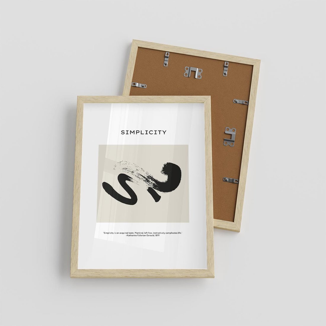 Ten plakat przenosi nas w świat abstrakcji, gdzie maźnięcia farbą tworzą unikalne kompozycje na czarno-białym tle. Zintegrowana typografia - "Simplicity" - jest jak manifest prostoty, dodając głębszy kontekst temu dziełu. To wyjątkowe połączenie abstrakcji i minimalizmu, które zachęca do refleksji nad znaczeniem i pięknem prostoty.