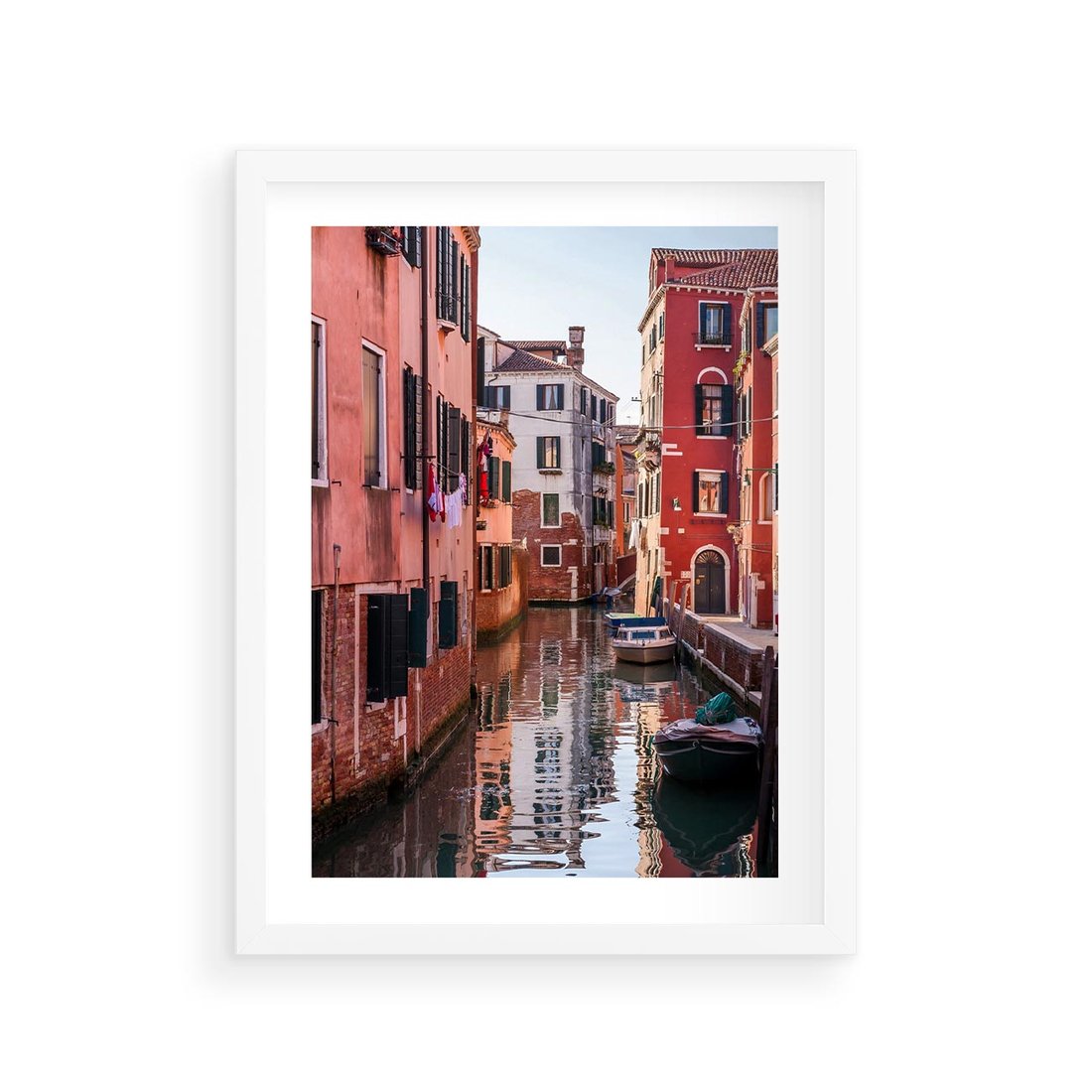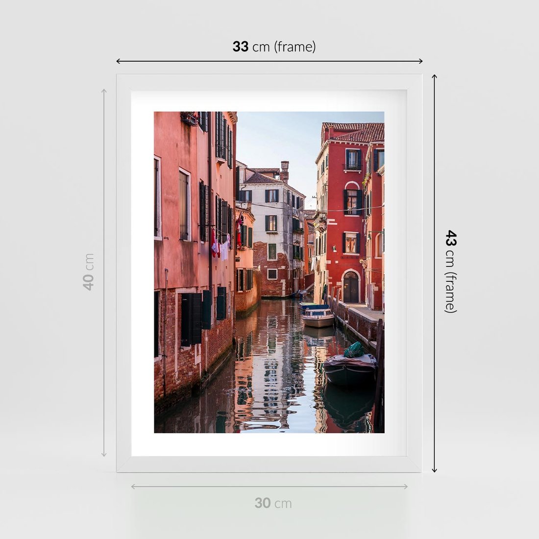 Plakat w ramie 30x40 - Przejażdżka gondolą przez Wenecję - Wenecja, kanały - rama biała