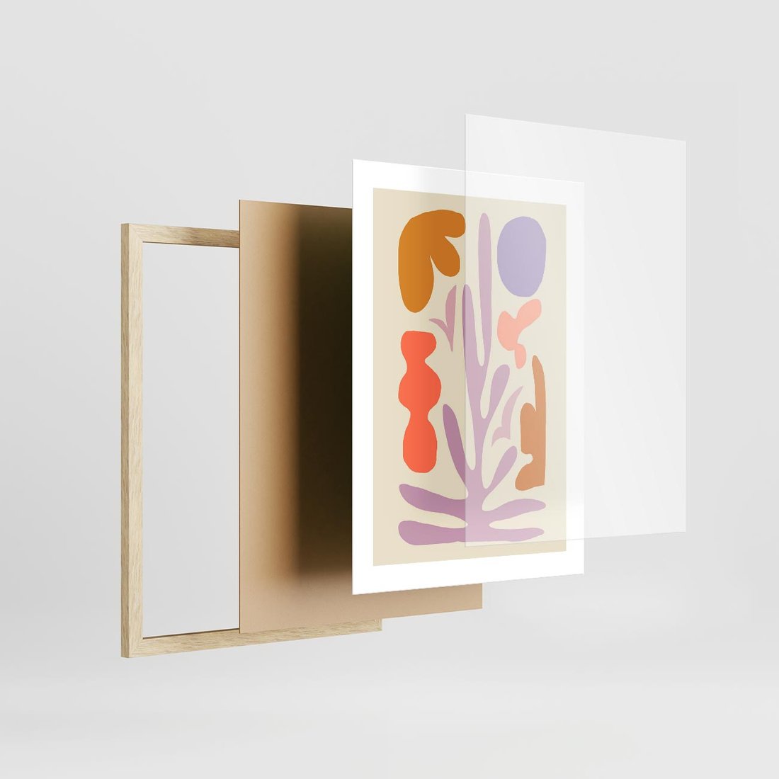 Plakat w ramie 30x40 - Przenikająca Harmonia - abstrakcyjny obraz, pastelowe kolory - rama drewno