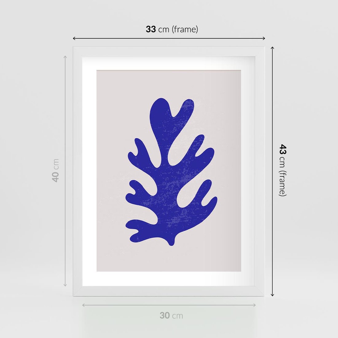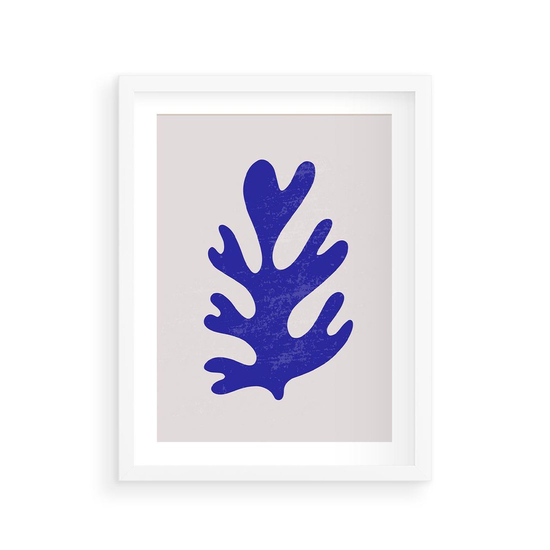 Plakat w ramie 30x40 - Przenikająca Struktura - boho plakat, niebieski liść w intensywnym kolorze - rama biała
