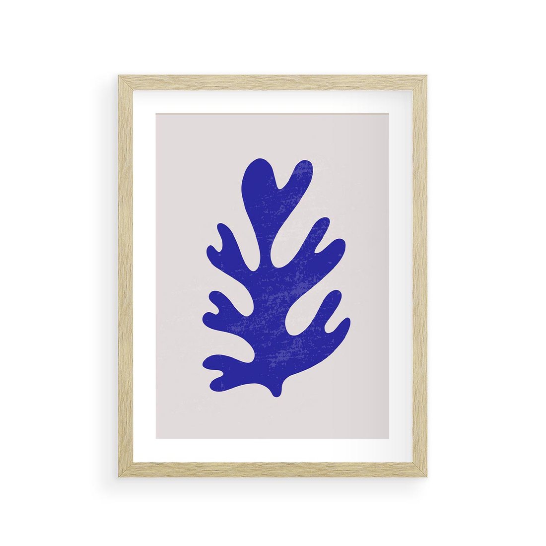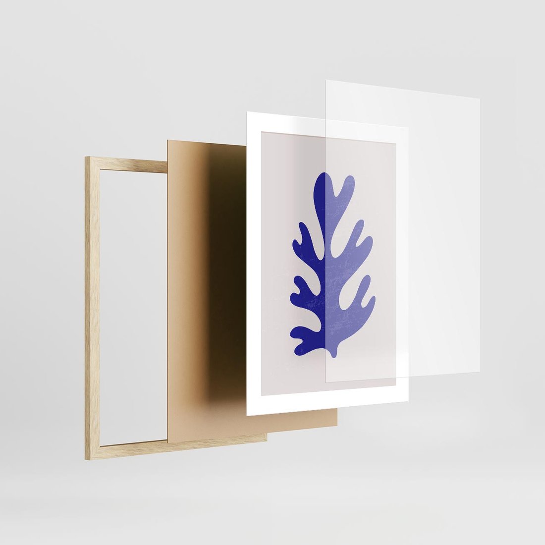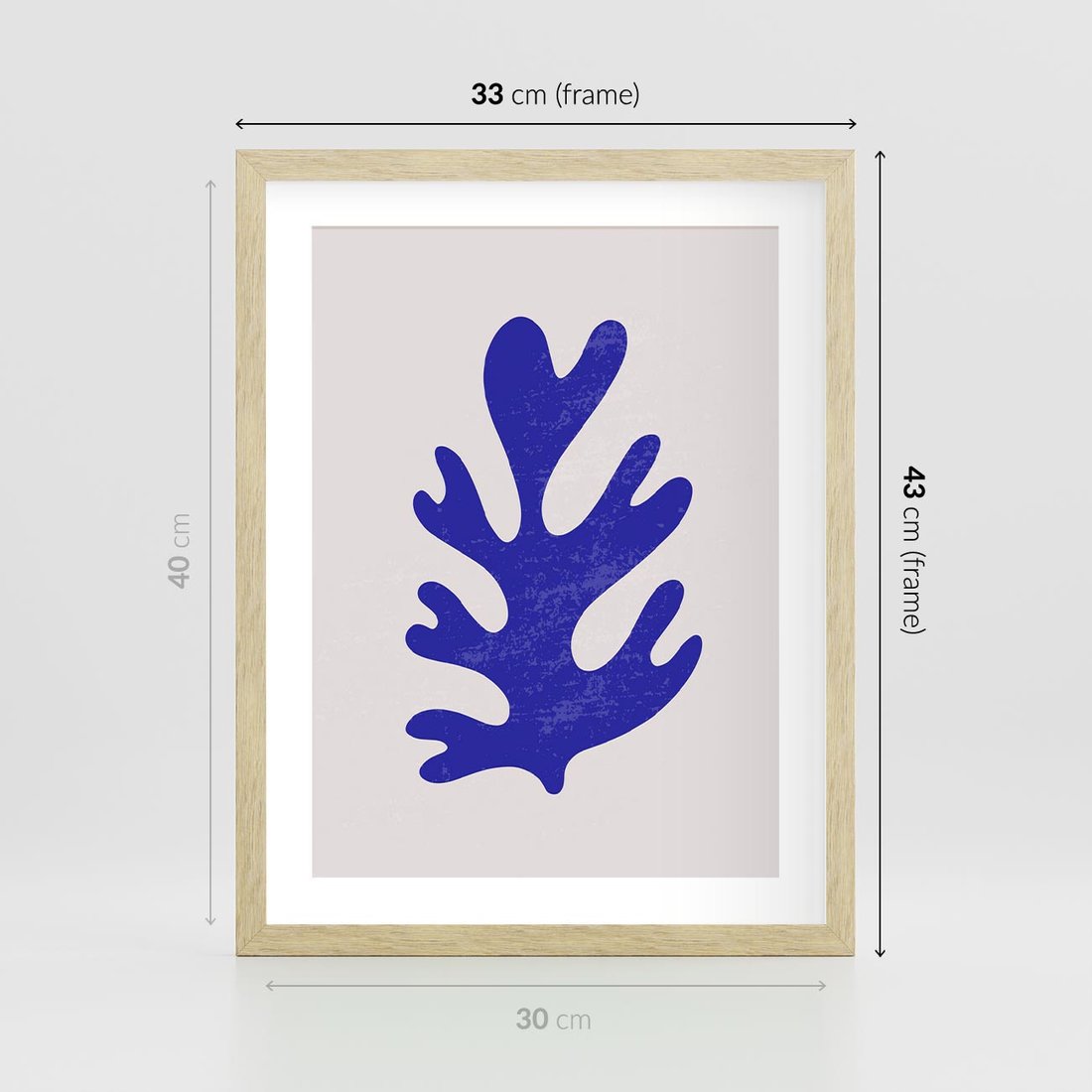 Plakat w ramie 30x40 - Przenikająca Struktura - boho plakat, niebieski liść w intensywnym kolorze - rama drewno