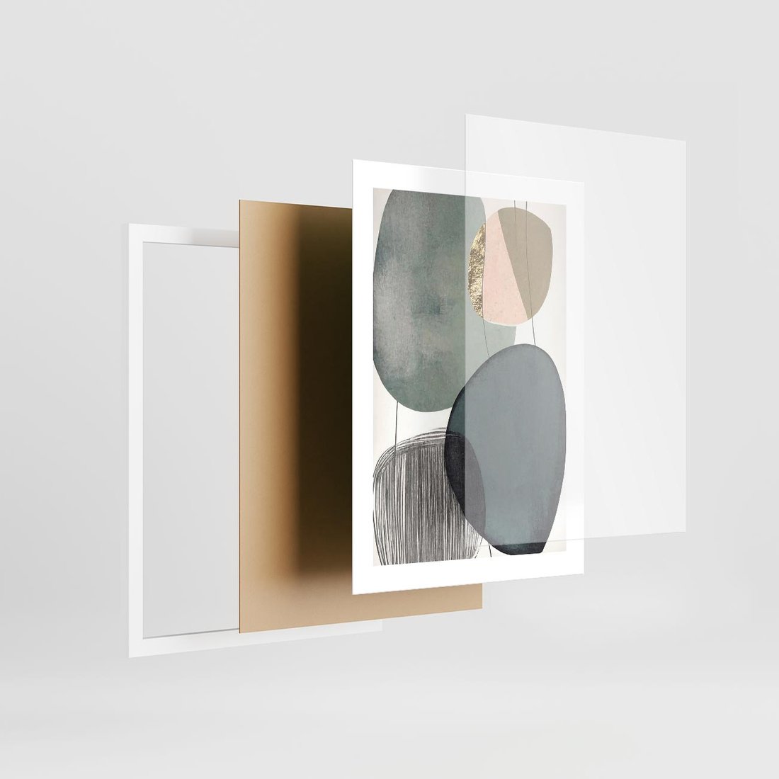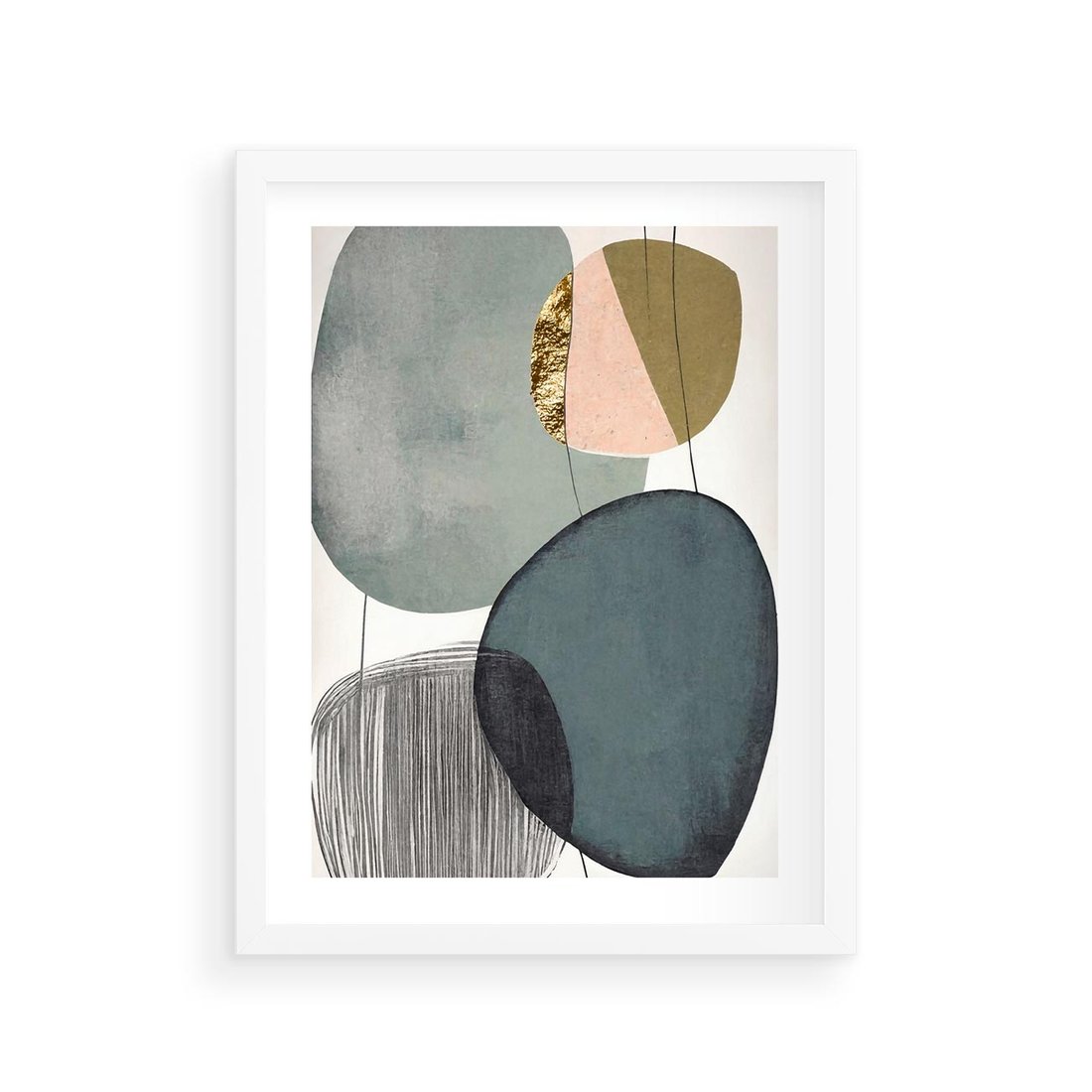 Plakat w ramie 30x40 - Przenikające Formy Duszy - abstrakcyjny obraz, geometryczne obłe formy - rama biała