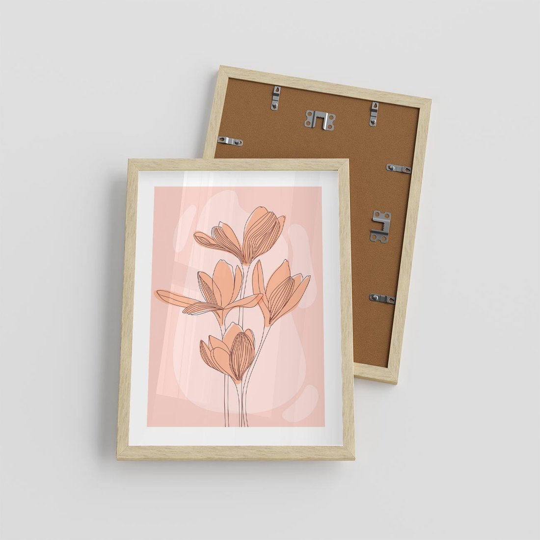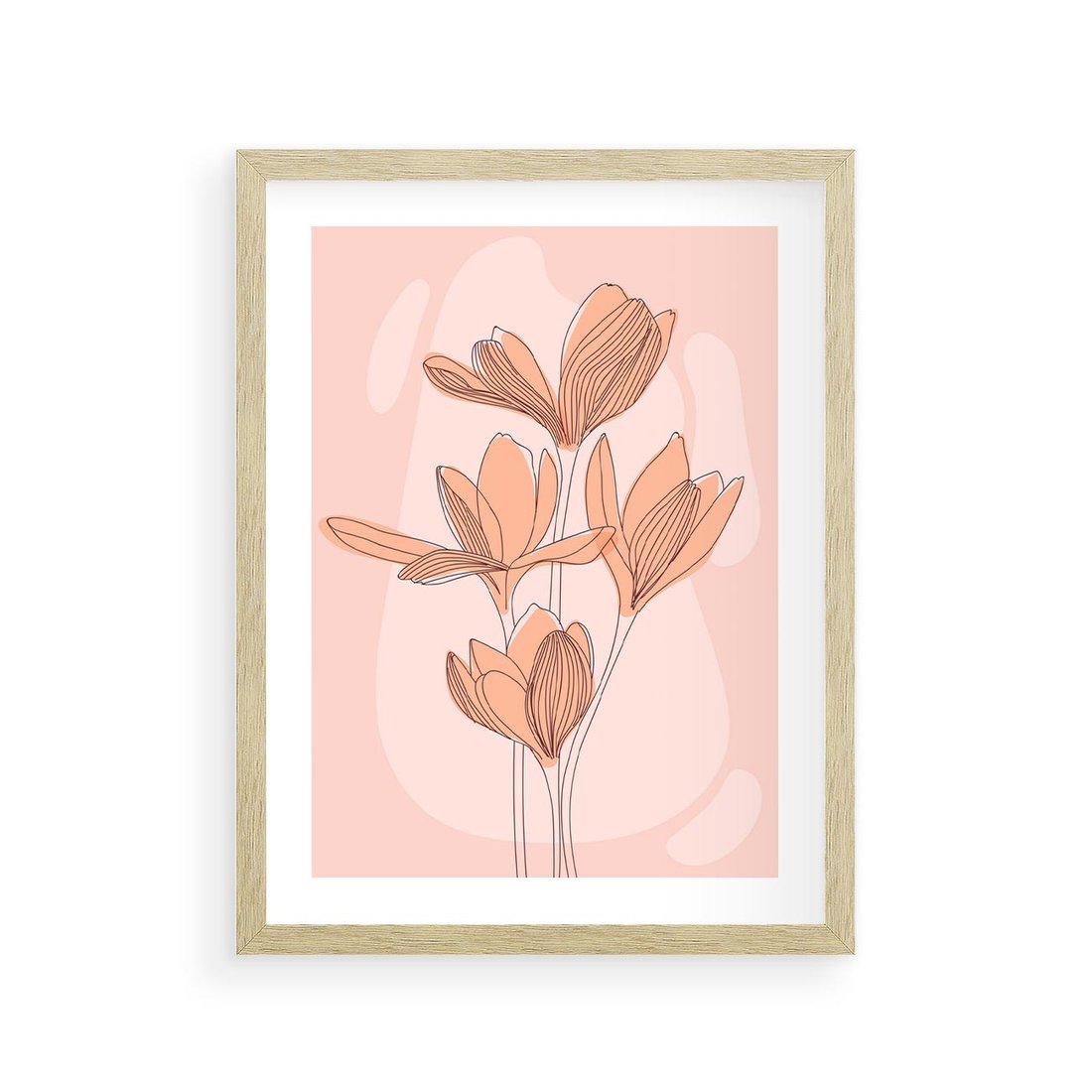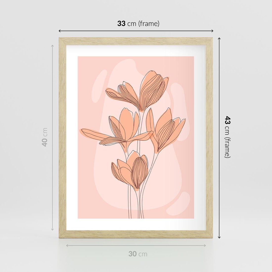 Plakat w ramie 30x40 - Przenikające Kształty - minimalistyczny plakat, pudrowe kwiaty - rama drewno