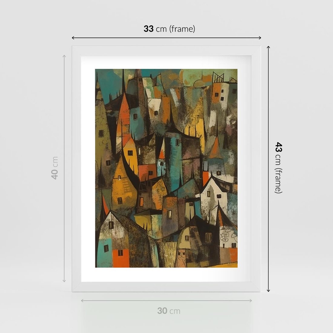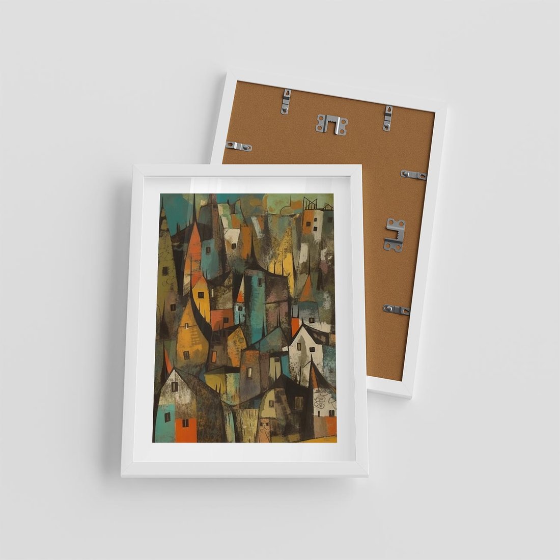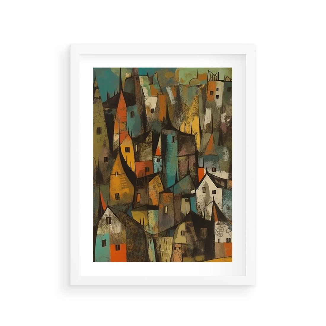 Plakat w ramie 30x40 - Przenikające Wizje - abstrakcyjny obraz, sztuka abstrakcji - rama biała