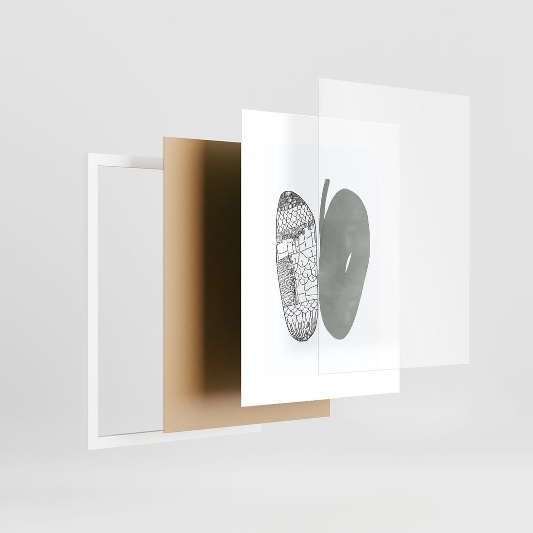 Plakat w ramie 30x40 - Przesunięte Jabłko - minimalistyczny plakat, jabłko - rama biała