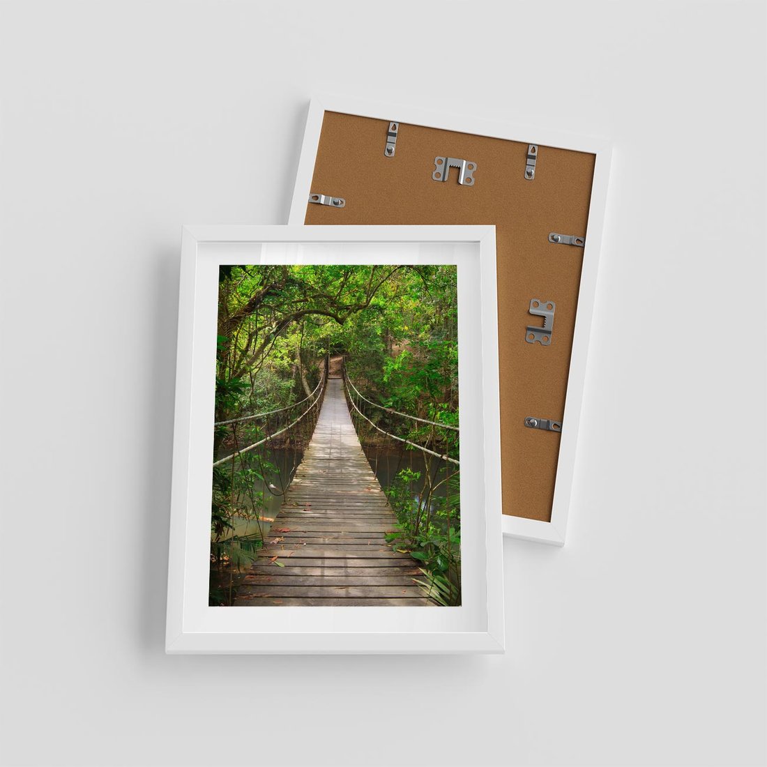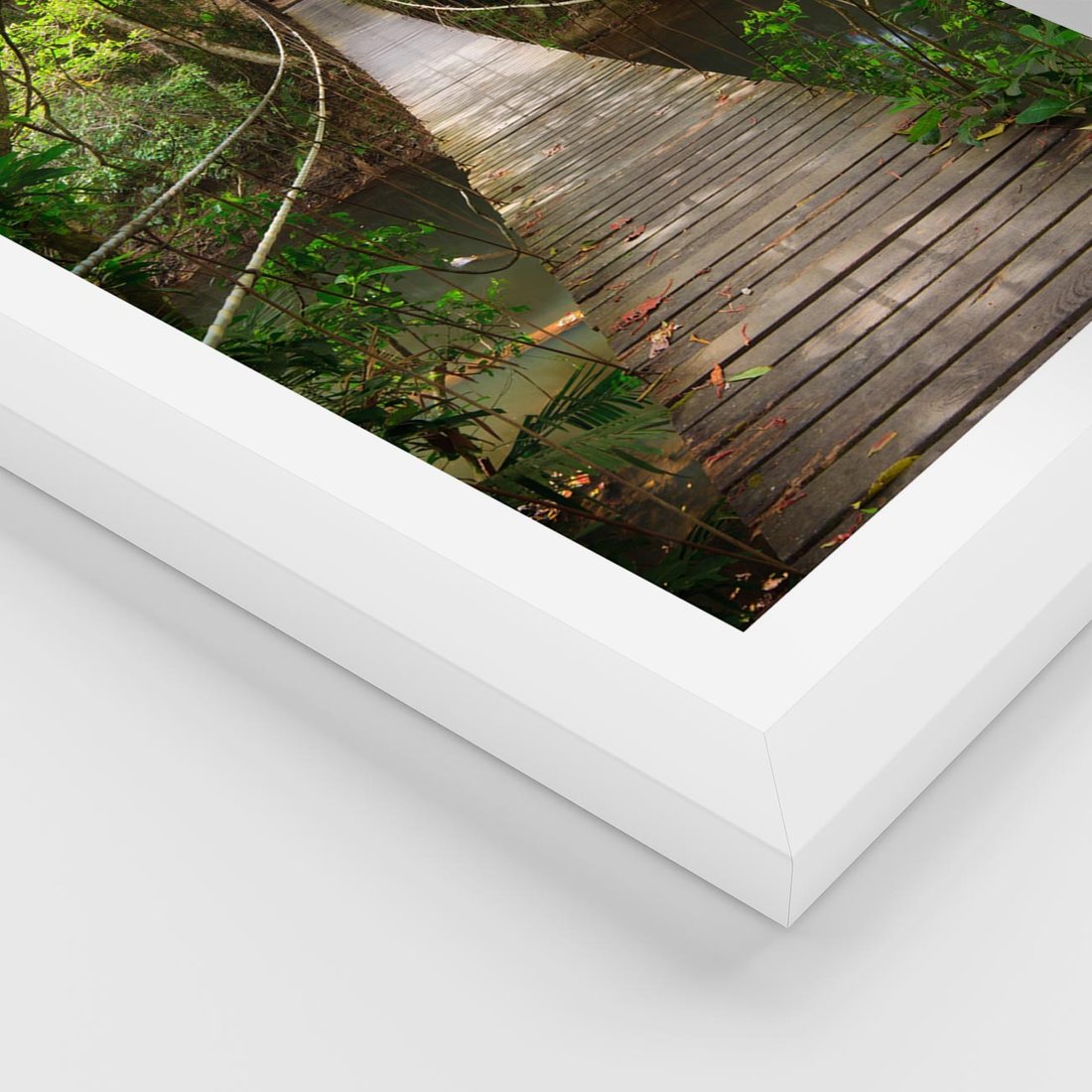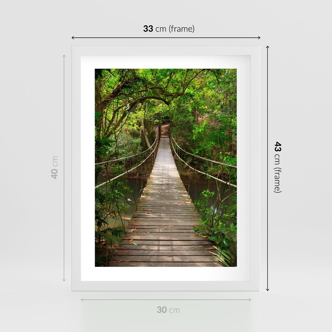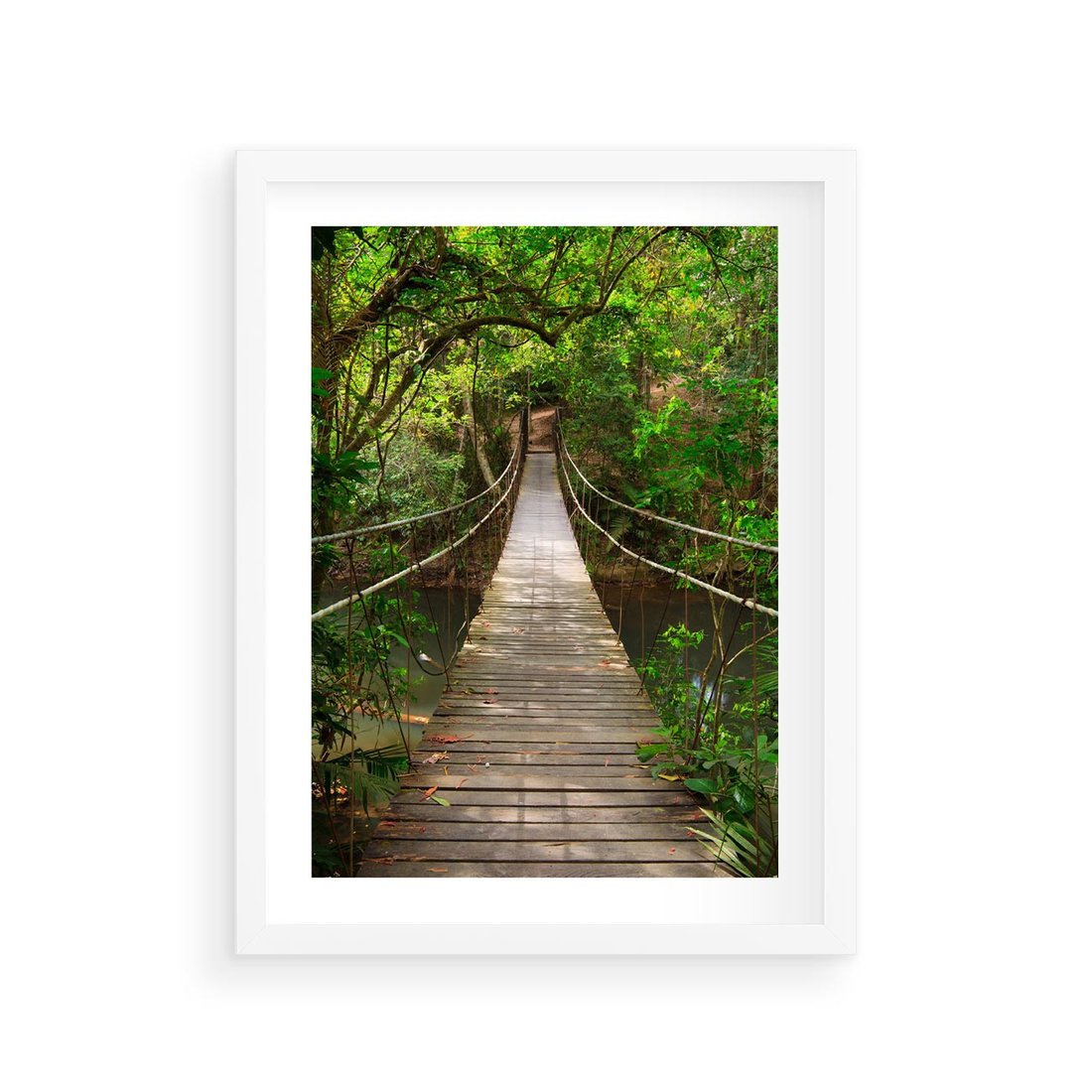 Plakat w ramie 30x40 - Przez Dżunglę - most, linowy - rama biała