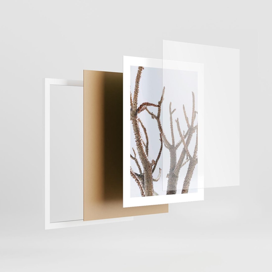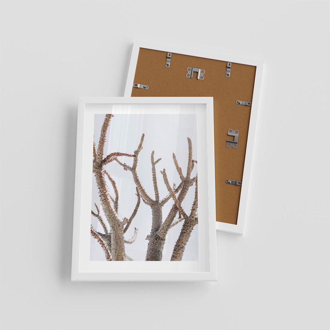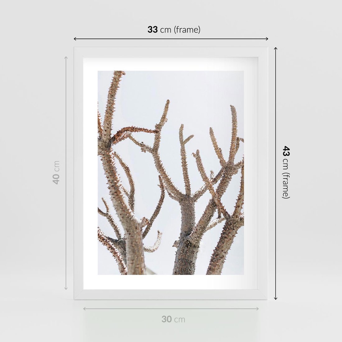 Plakat w ramie 30x40 - Pustynna Harmonia Gałęzi - pustynna roślina, suche gałęzie - rama biała