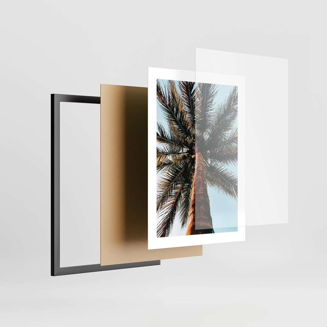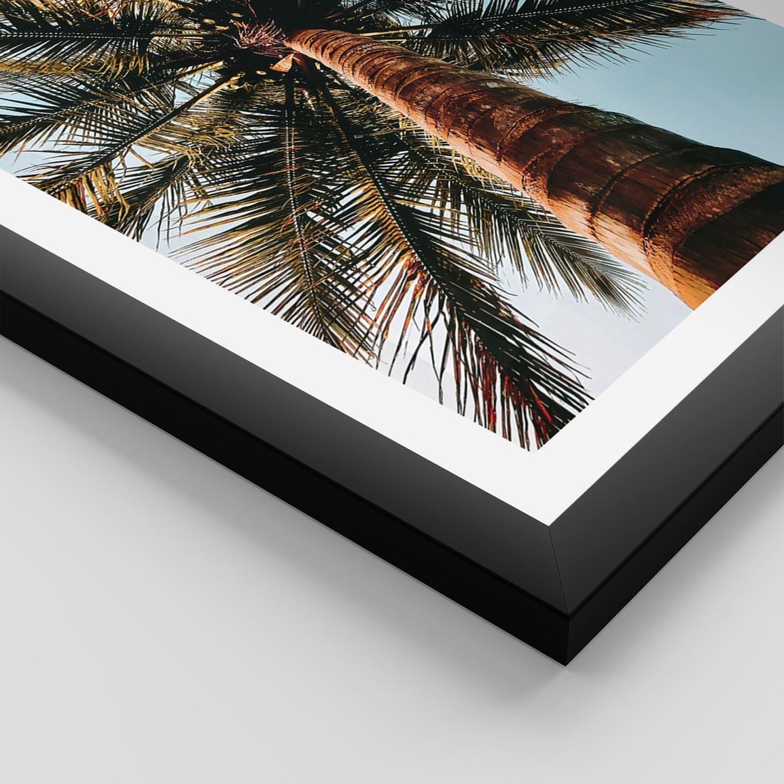 Plakat w ramie 30x40 - Rajskie Inspiracje: Palma na Niebie - palma, na tle nieba - rama czarna