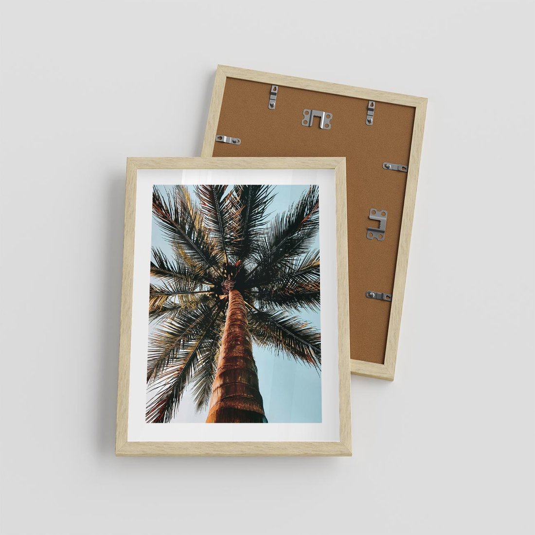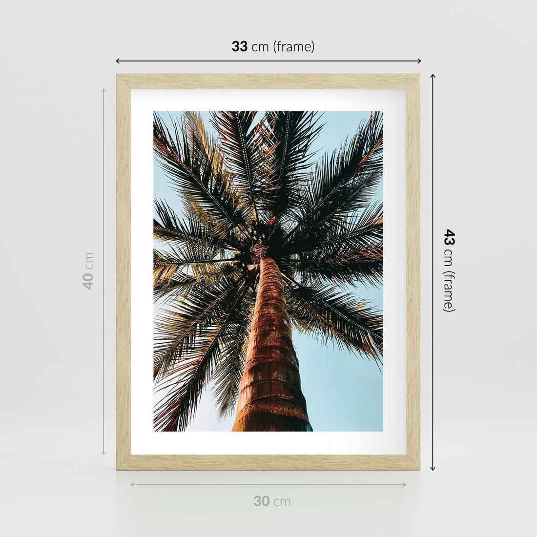 Plakat w ramie 30x40 - Rajskie Inspiracje: Palma na Niebie - palma, na tle nieba - rama drewno