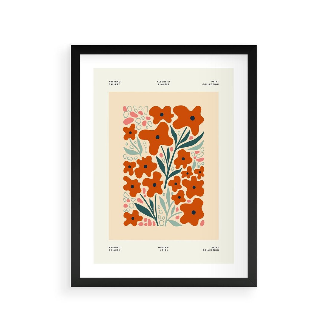 Ta minimalistyczna kompozycja kwiatów w pastelowych kolorach opiera się na graficznych kształtach, oddając esencję minimalizmu. To obraz, który w prosty sposób ukazuje piękno natury, wykorzystując abstrakcyjne formy.