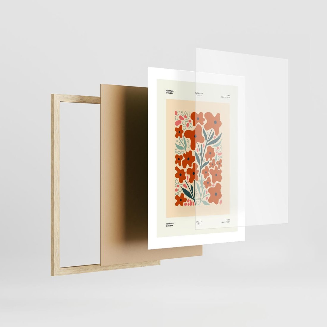 Plakat w ramie 30x40 - Refleksje Kolorowych Tajemnic - kwiaty, kompozycja - rama drewno