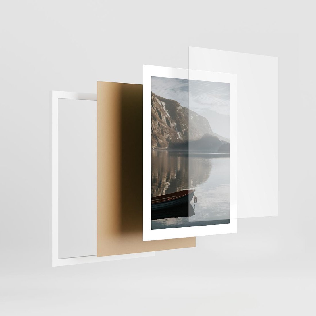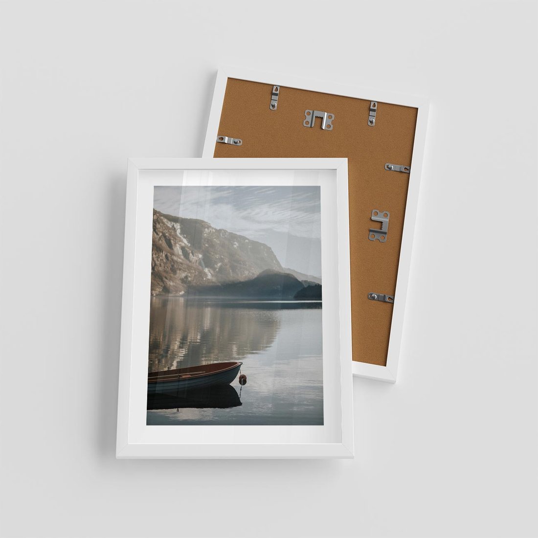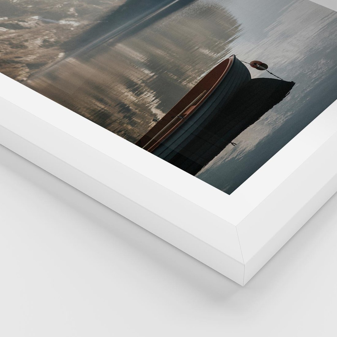Plakat w ramie 30x40 - Refleksje Natury - morze, łódka - rama biała